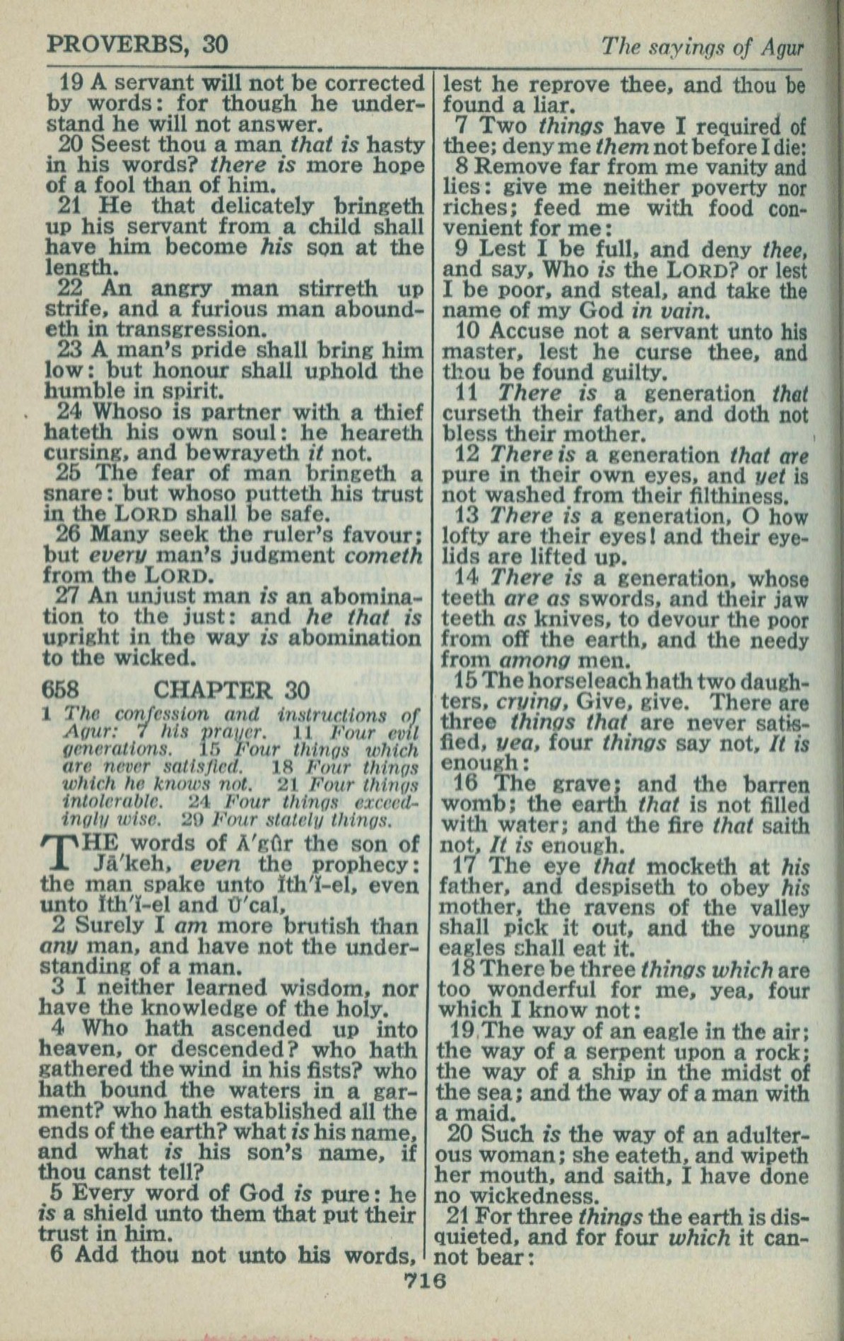 1946年King James Version 箴言 29 章 19 節到 30 章 21 節