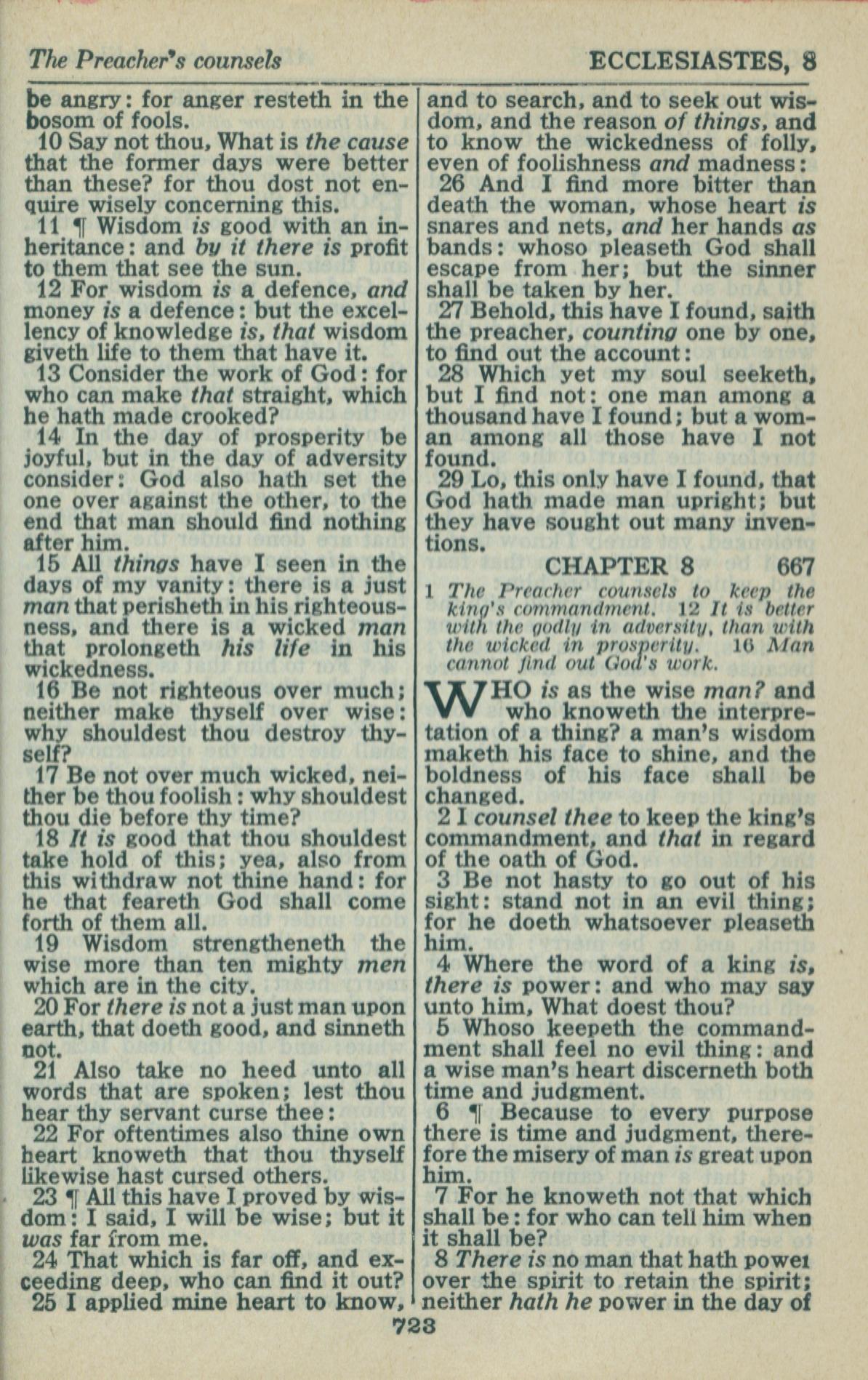 1946年King James Version 傳道書 7 章 10 節到 8 章 8 節