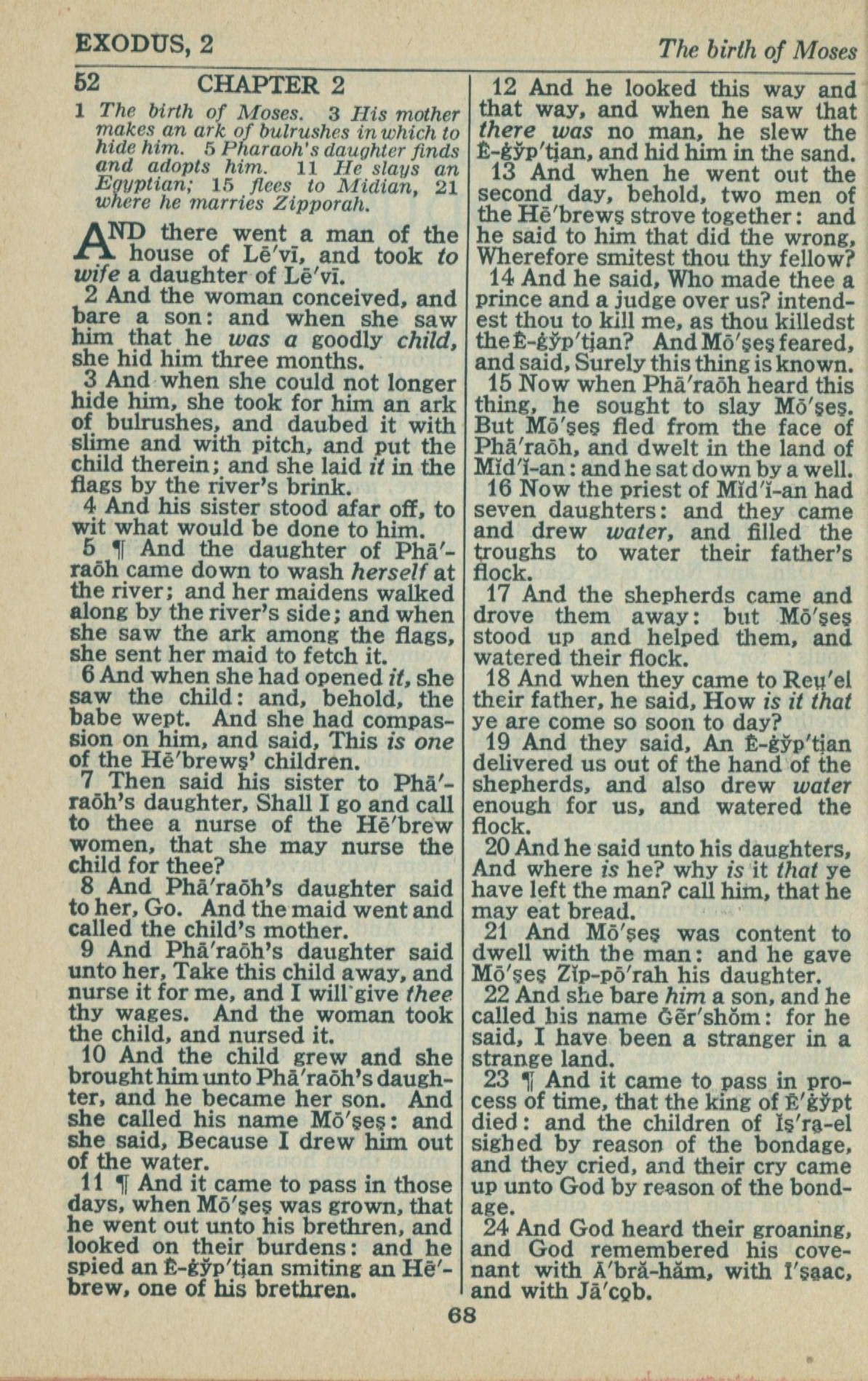 1946年King James Version 出埃及記 2 章 1 節到 2 章 24 節