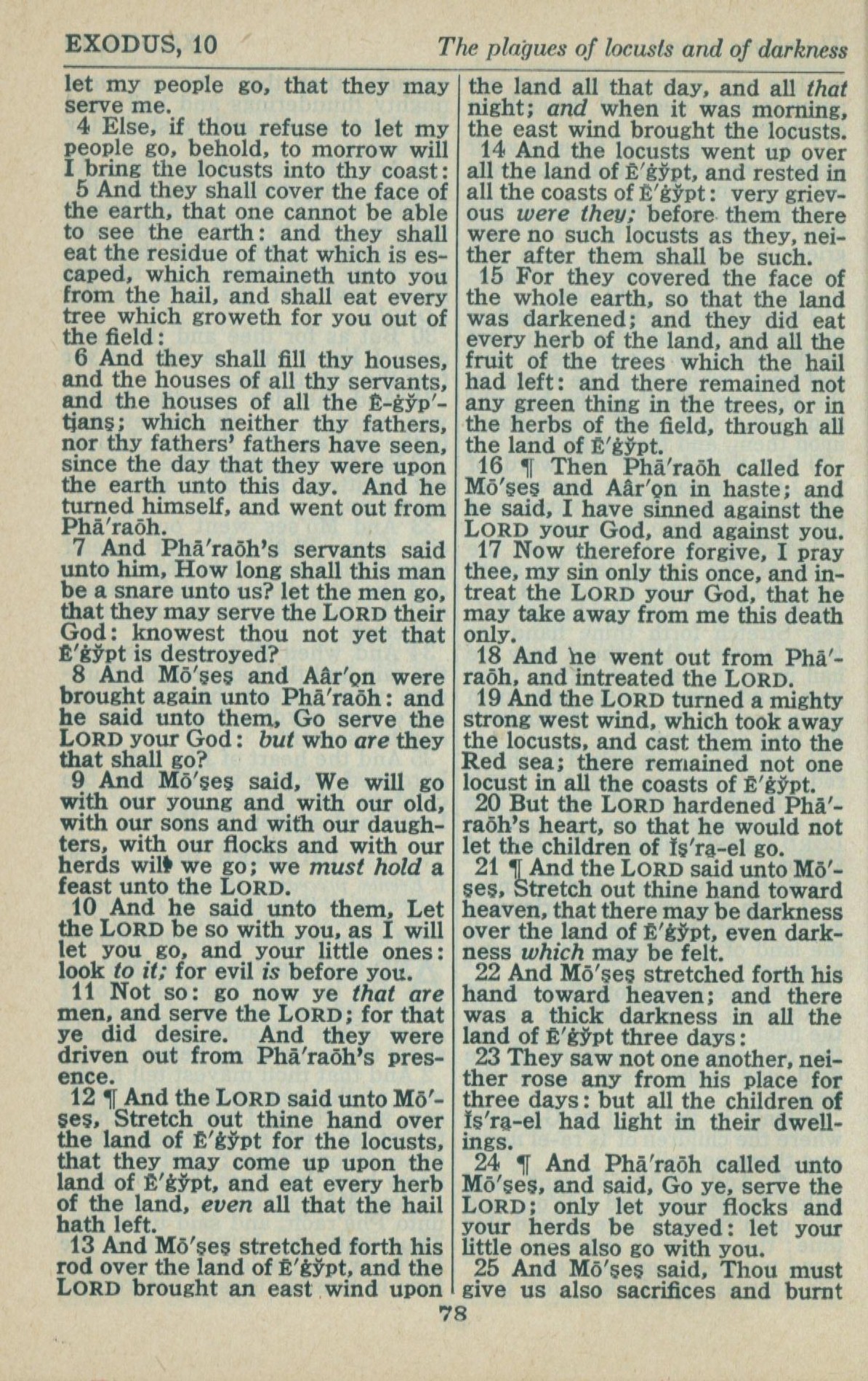 1946年King James Version 出埃及記 10 章 4 節到 10 章 25 節
