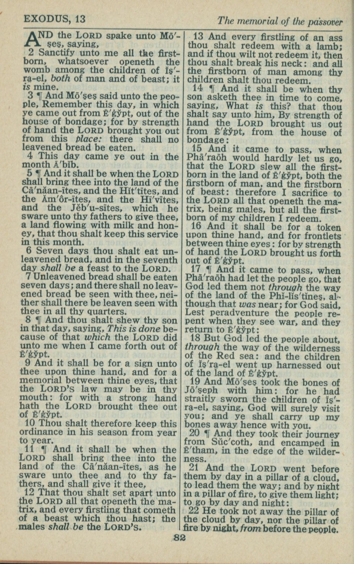1946年King James Version 出埃及記 13 章 2 節到 13 章 22 節