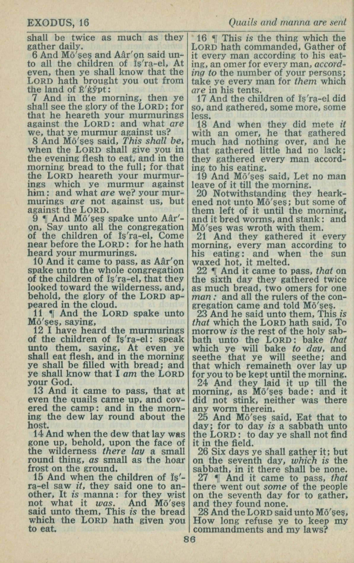 1946年King James Version 出埃及記 16 章 6 節到 16 章 28 節