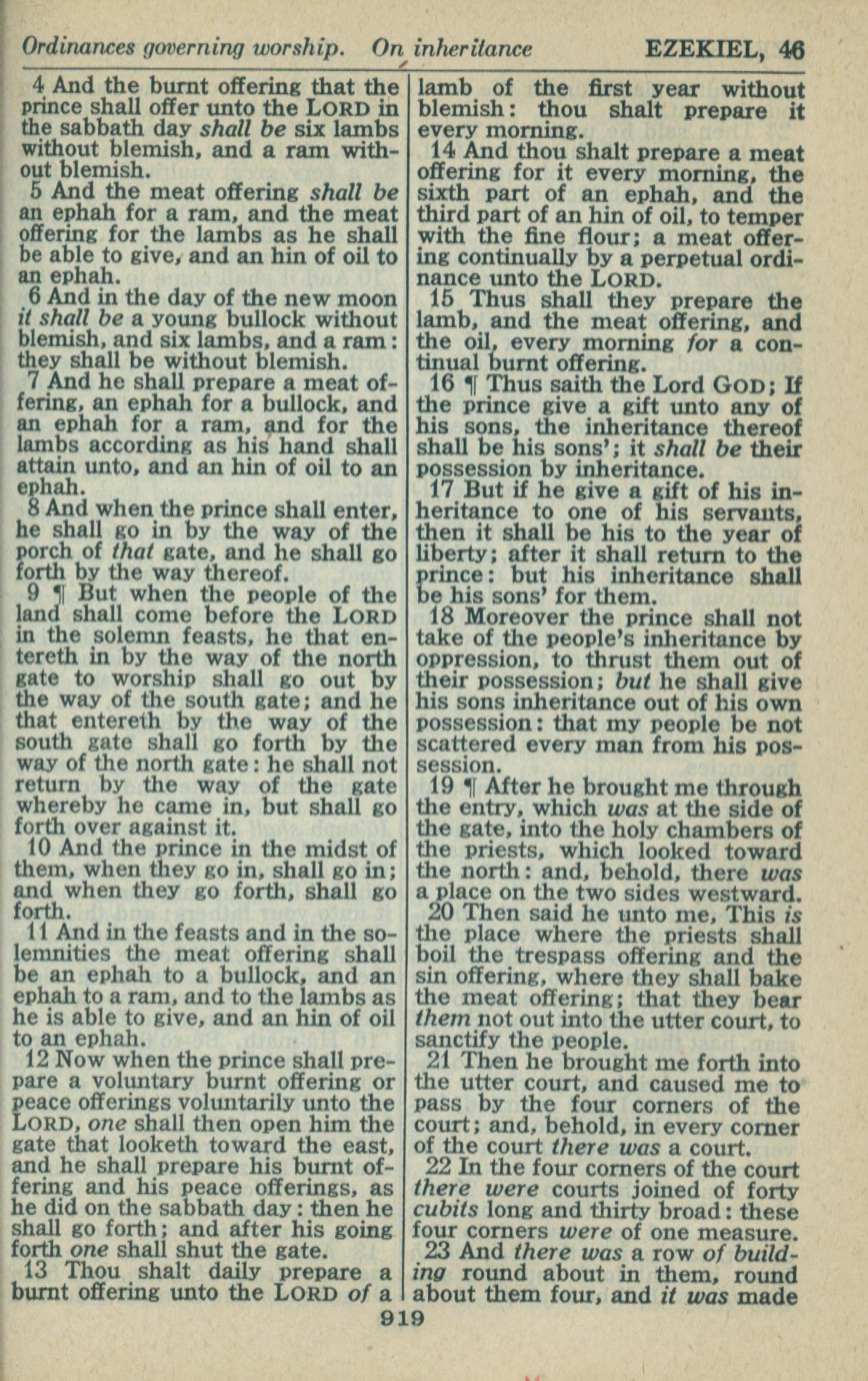 1946年King James Version 以西結書 46 章 4 節到 46 章 23 節