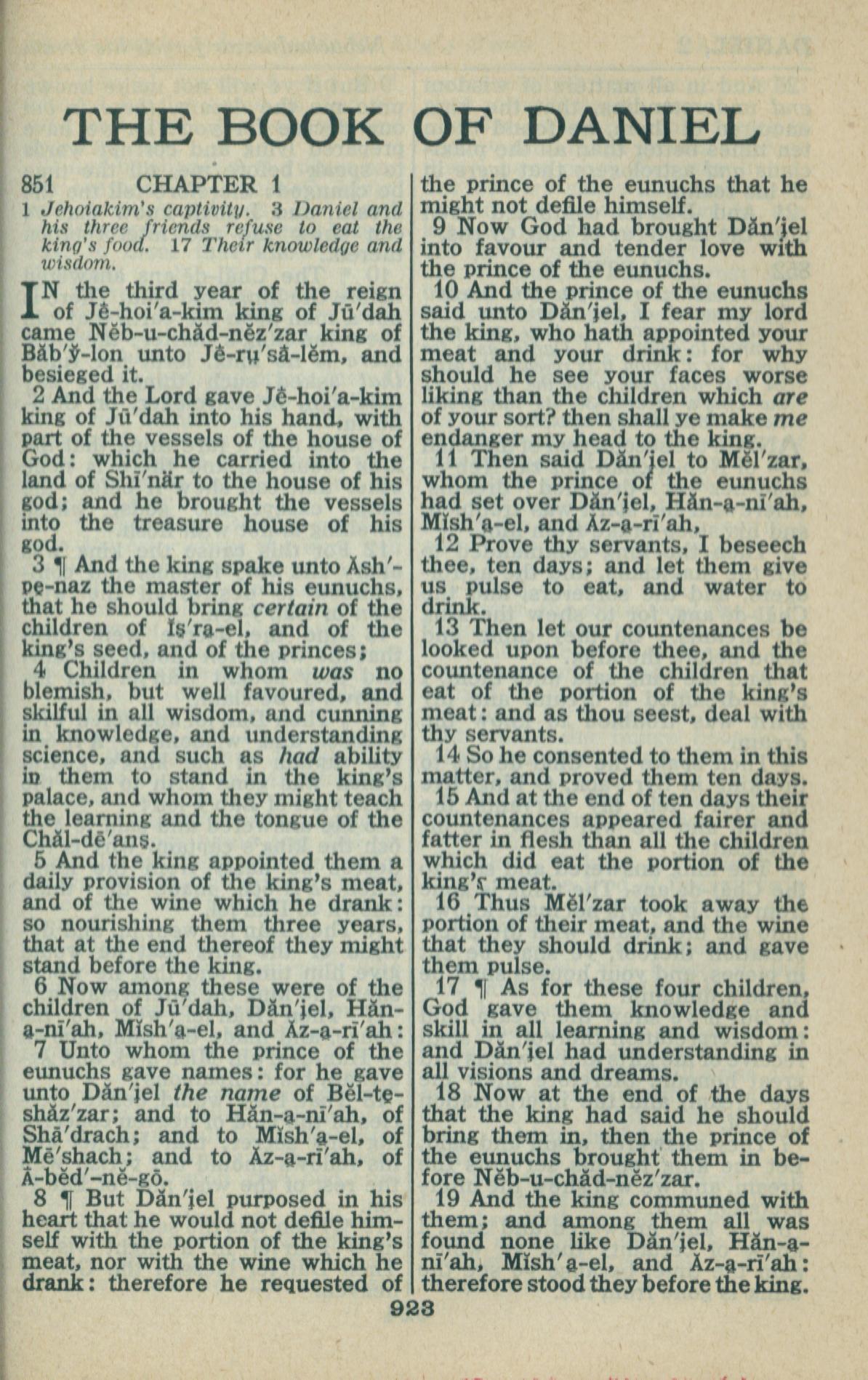 1946年King James Version 但以理書 1 章 1 節到 1 章 19 節