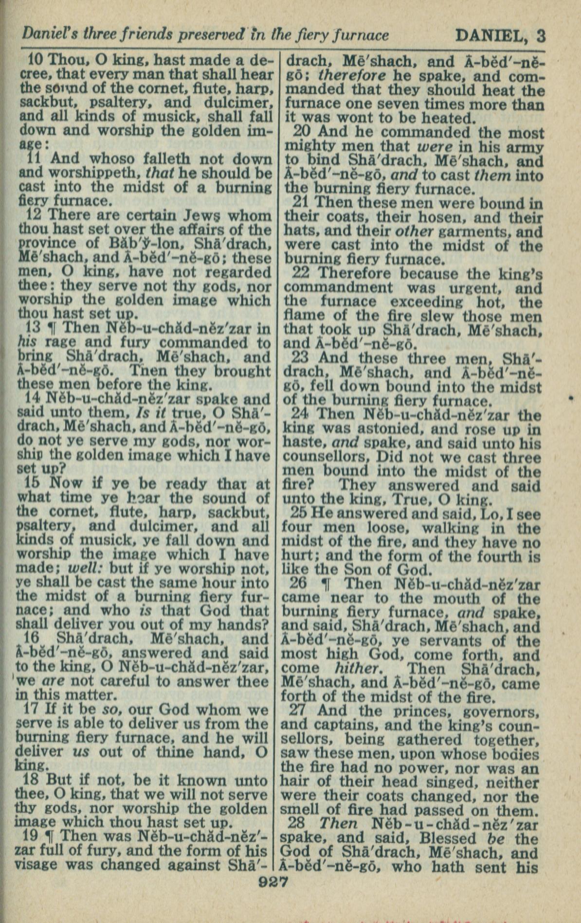 1946年King James Version 但以理書 3 章 10 節到 3 章 28 節