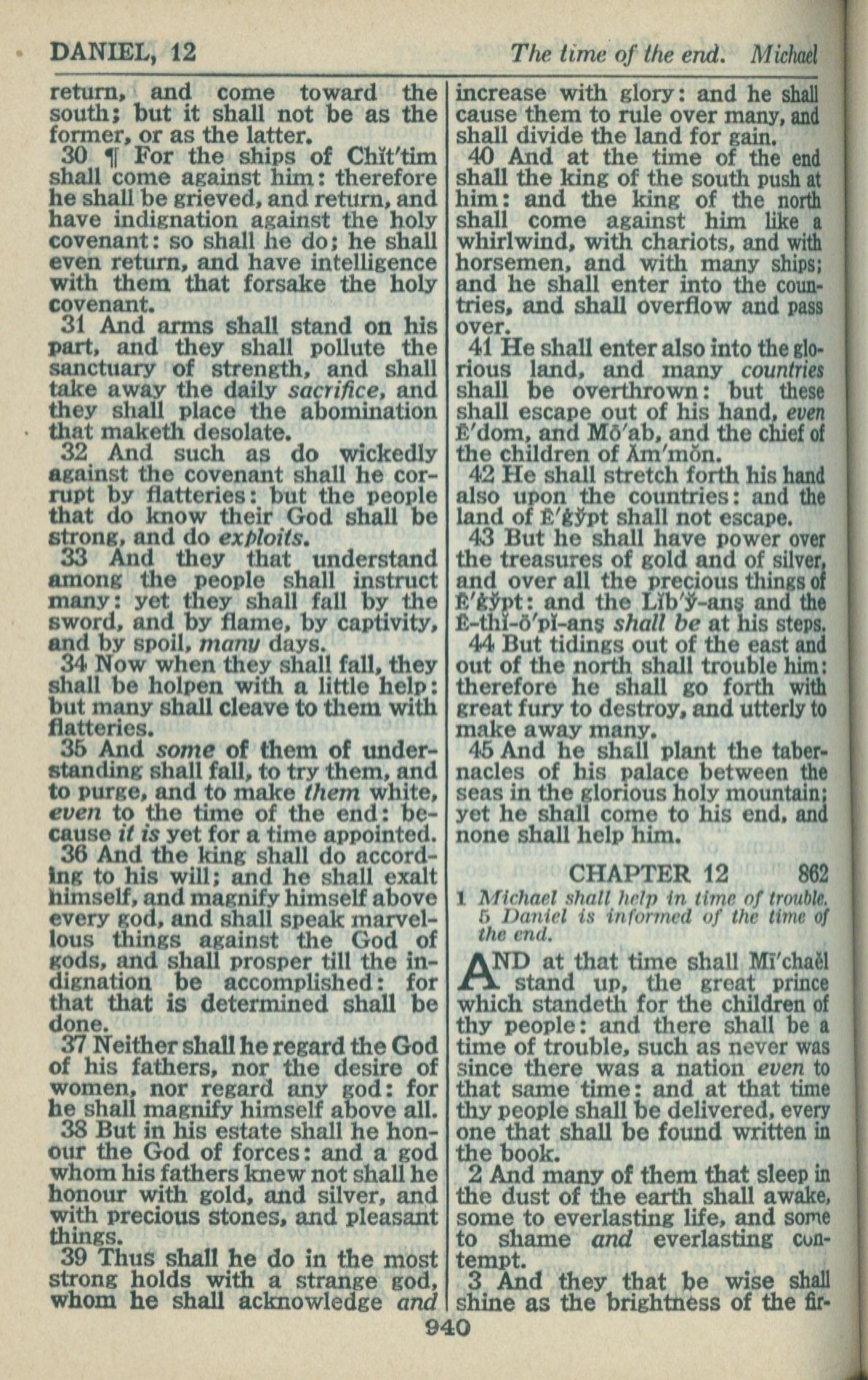 1946年King James Version 但以理書 11 章 30 節到 12 章 3 節