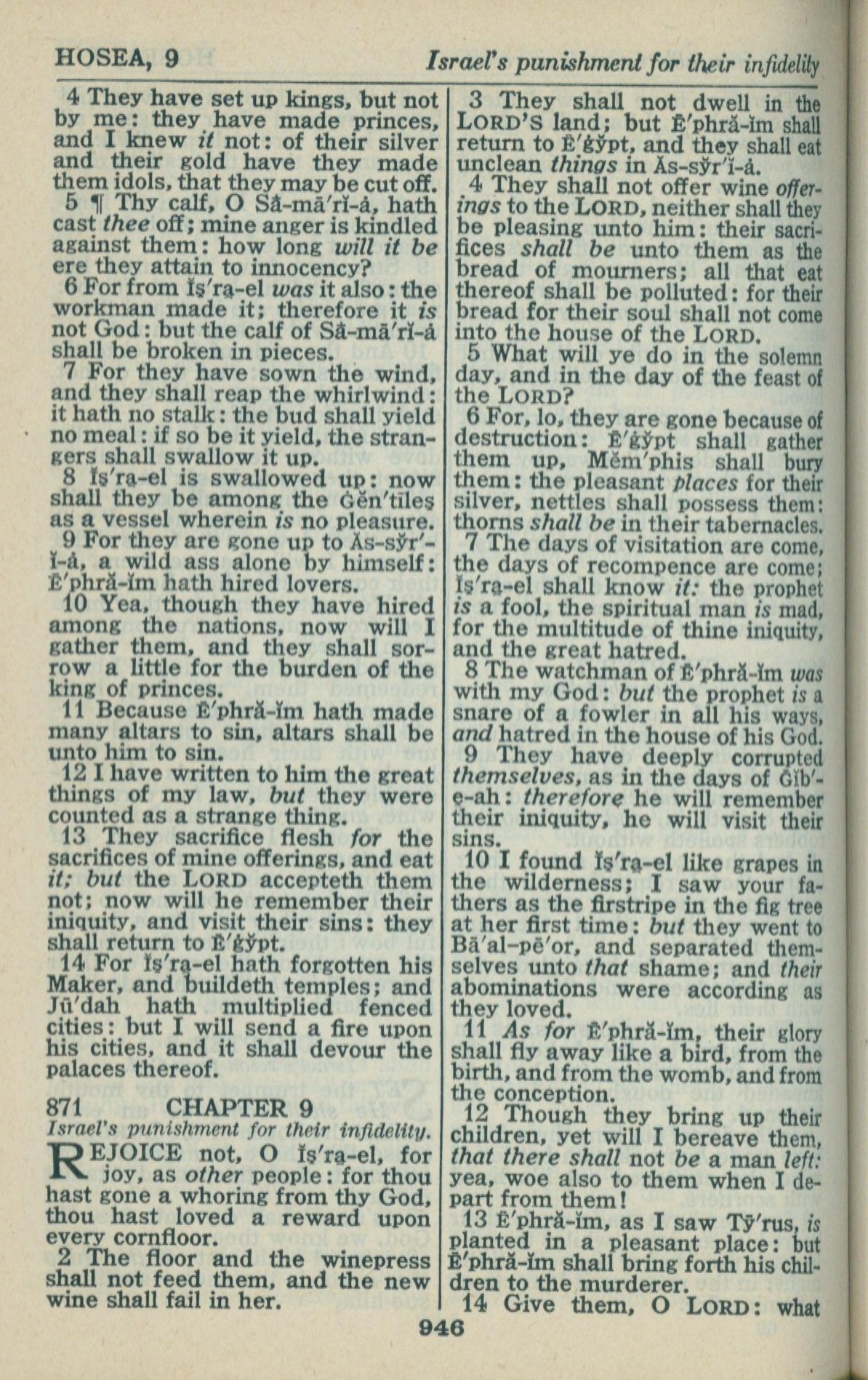 1946年King James Version 何西阿書 8 章 4 節到 9 章 14 節