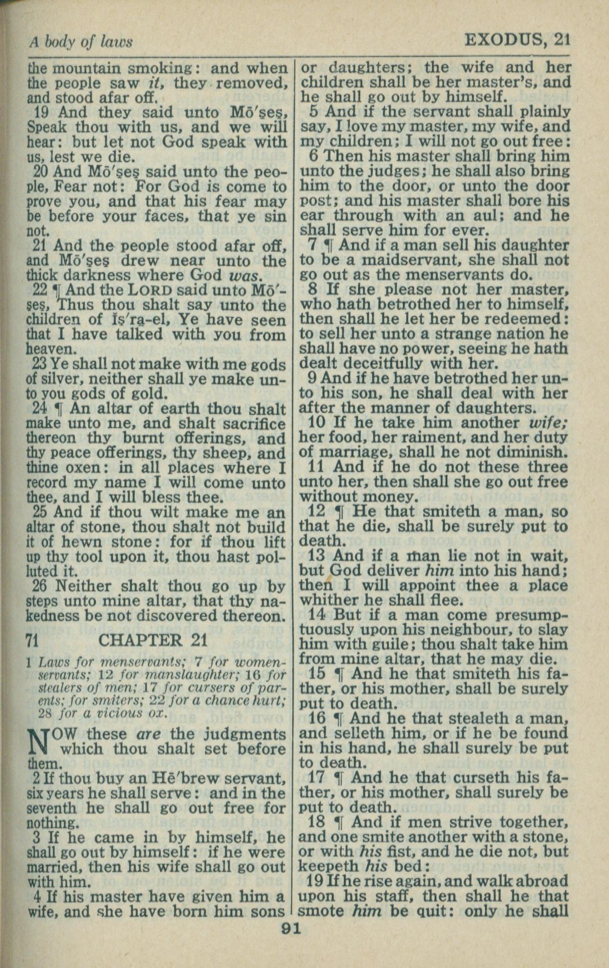 1946年King James Version 出埃及記 20 章 19 節到 21 章 19 節