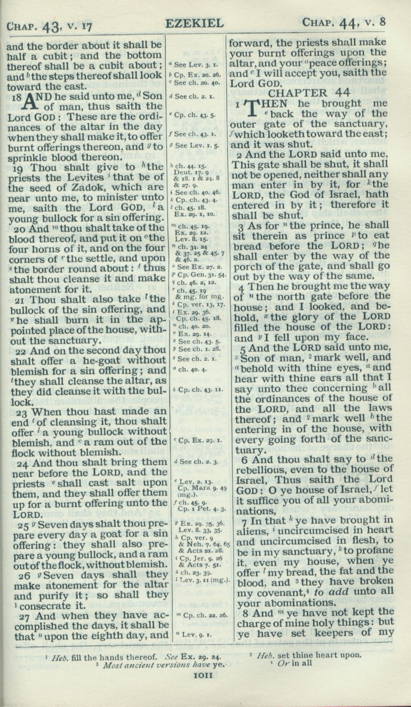 1898年Revised Version 以西結書 43 章 18 節到 44 章 8 節