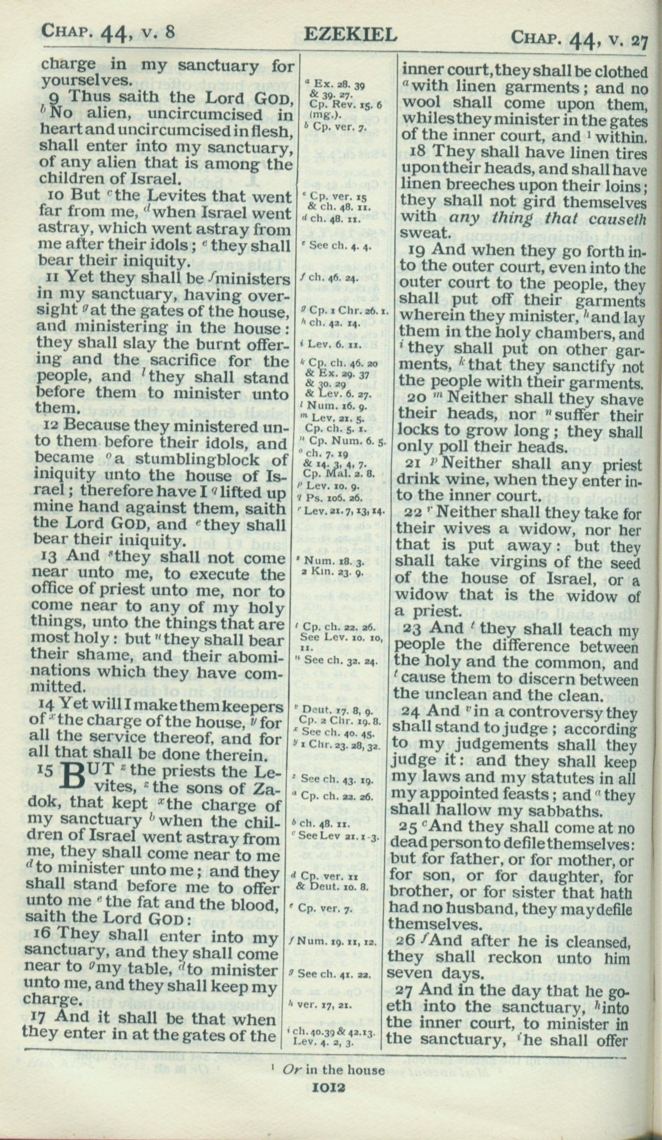 1898年Revised Version 以西結書 44 章 9 節到 44 章 27 節