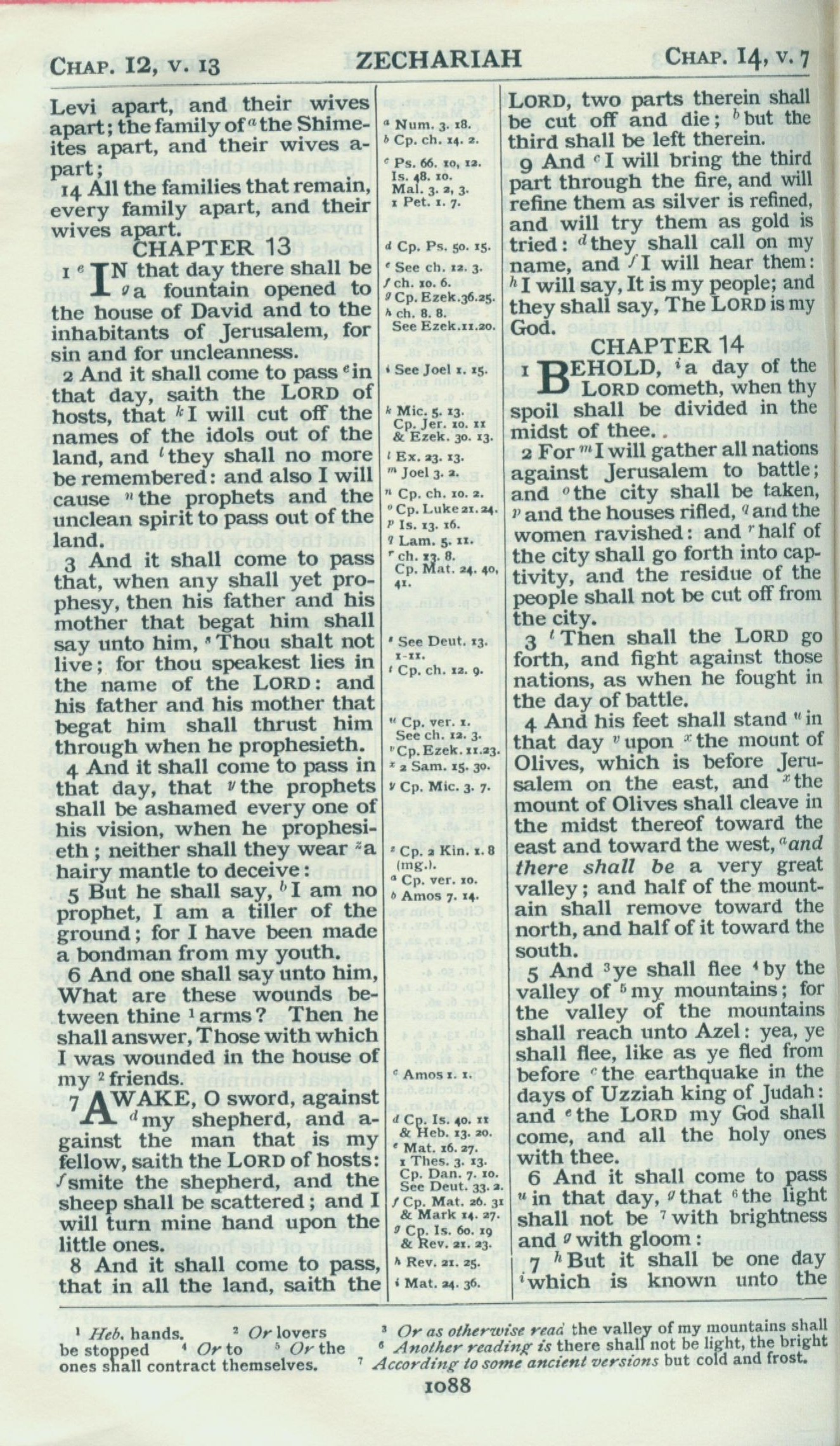 1898年Revised Version 撒迦利亞書 12 章 14 節到 14 章 7 節