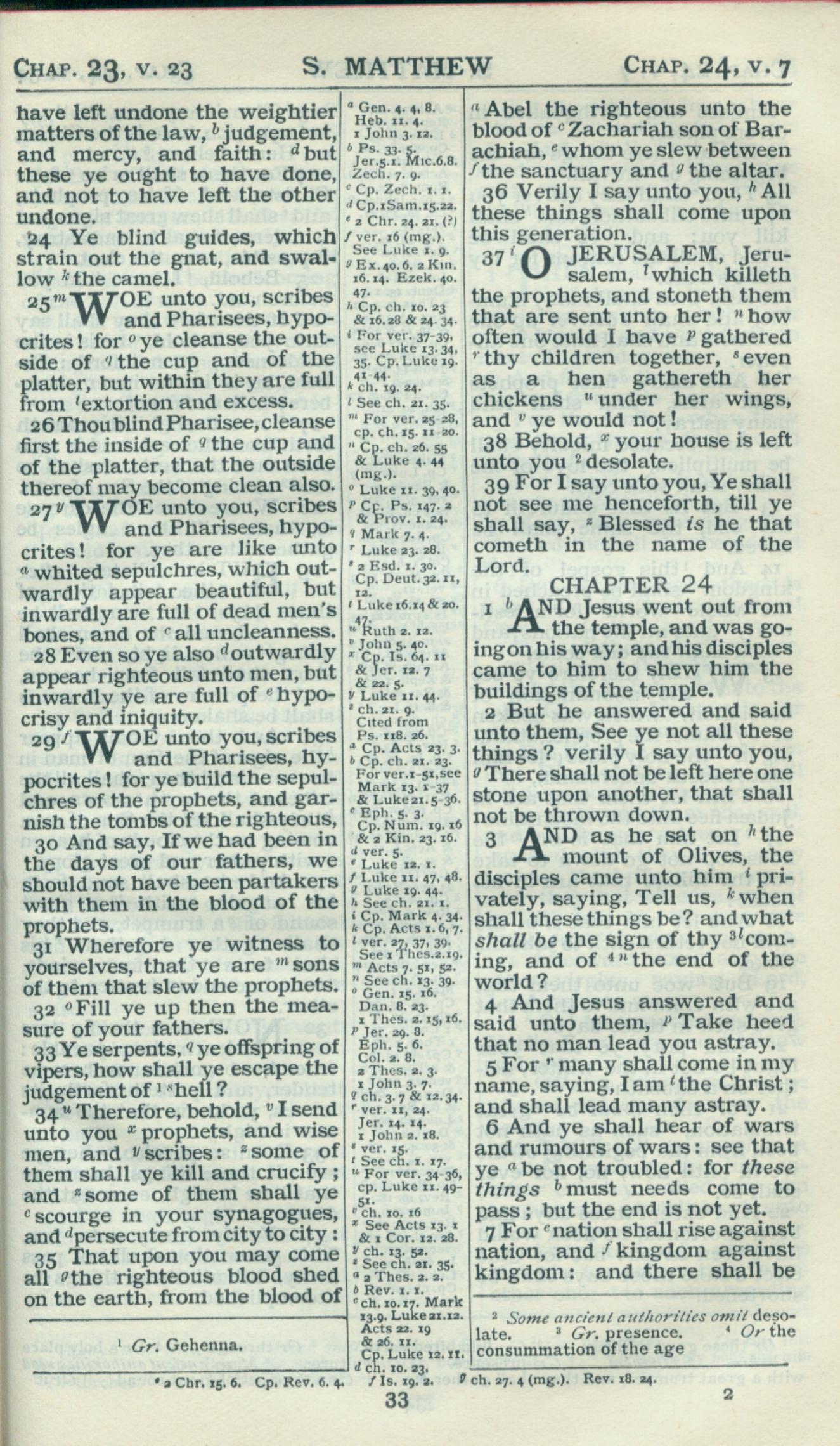 1898年Revised Version 馬太福音 23 章 24 節到 24 章 7 節