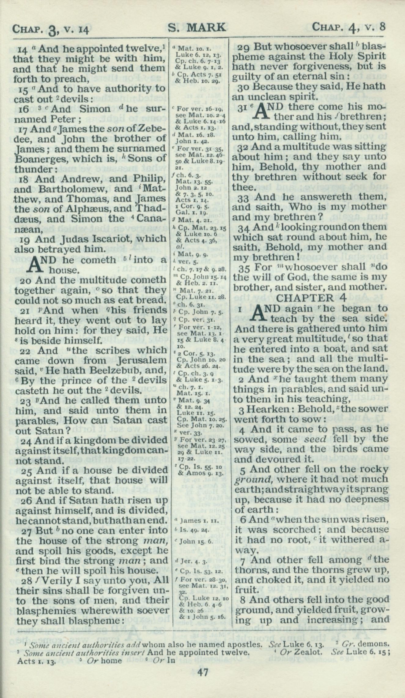 1898年Revised Version 馬可福音 3 章 14 節到 4 章 8 節