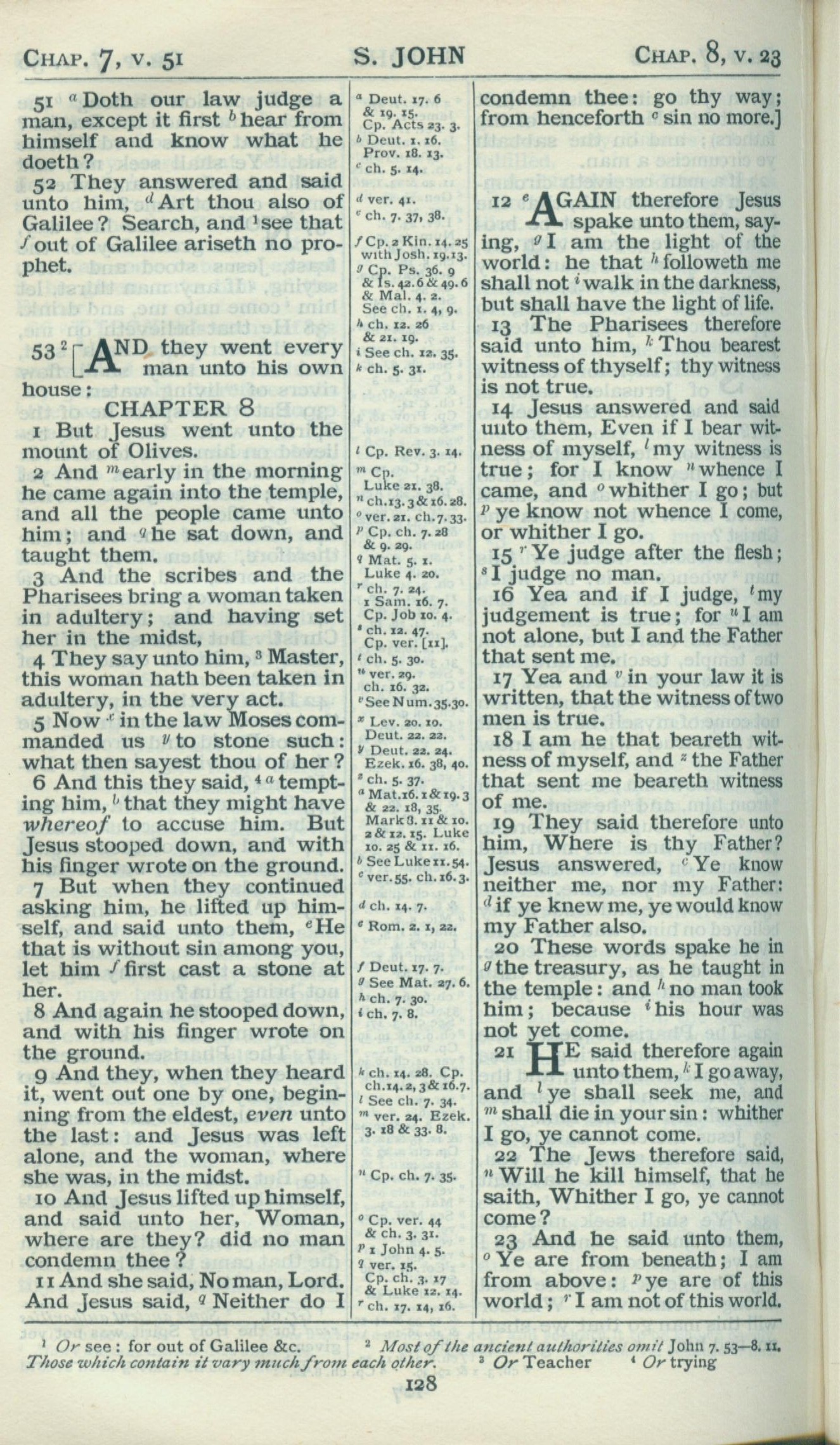 1898年Revised Version 約翰福音 7 章 51 節到 8 章 23 節