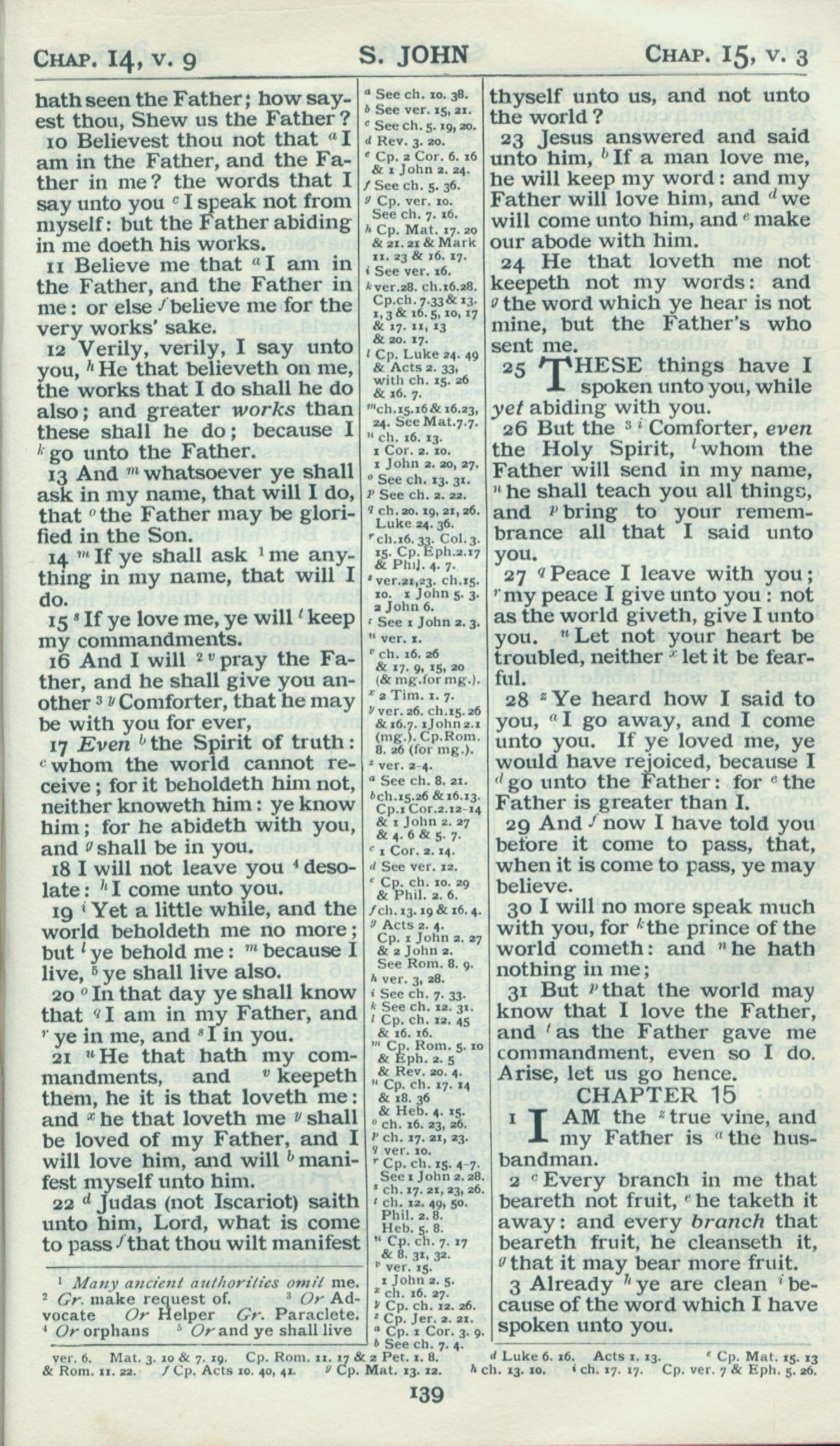 1898年Revised Version 約翰福音 14 章 10 節到 15 章 3 節