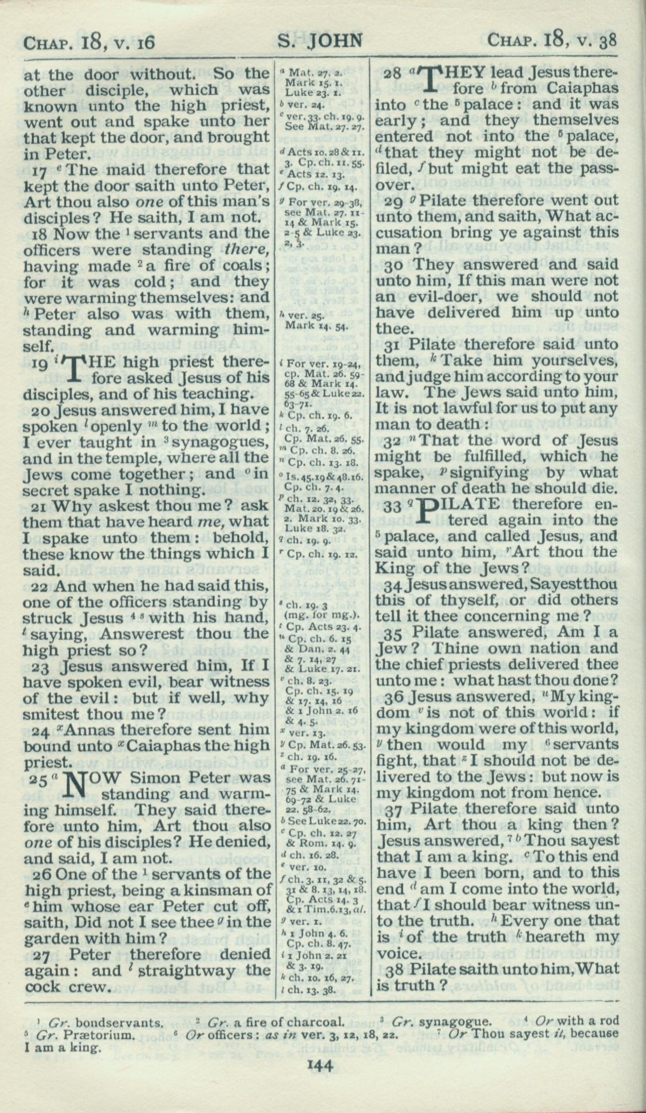1898年Revised Version 約翰福音 18 章 16 節到 18 章 37 節