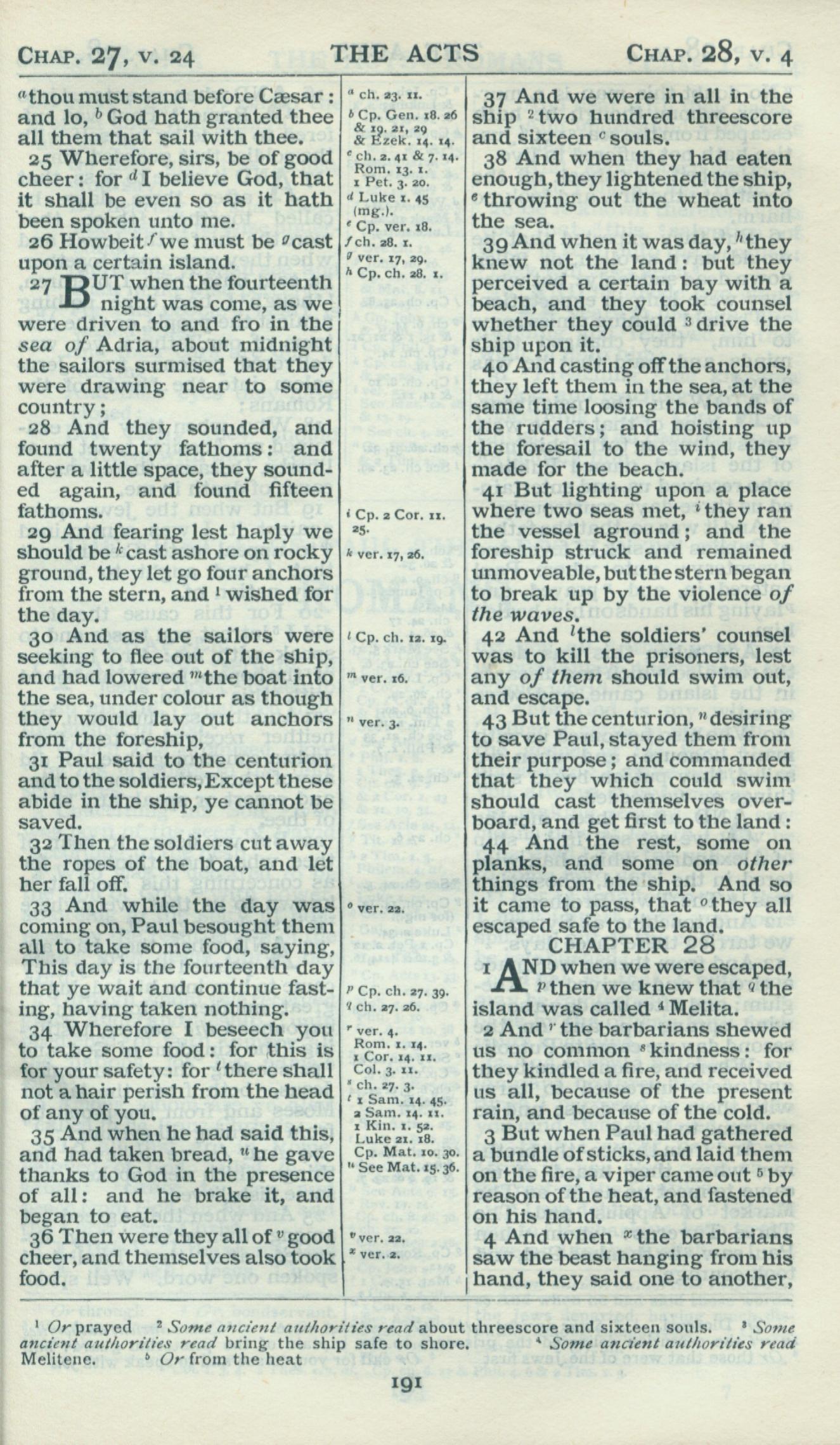 1898年Revised Version 使徒行傳 27 章 25 節到 28 章 4 節