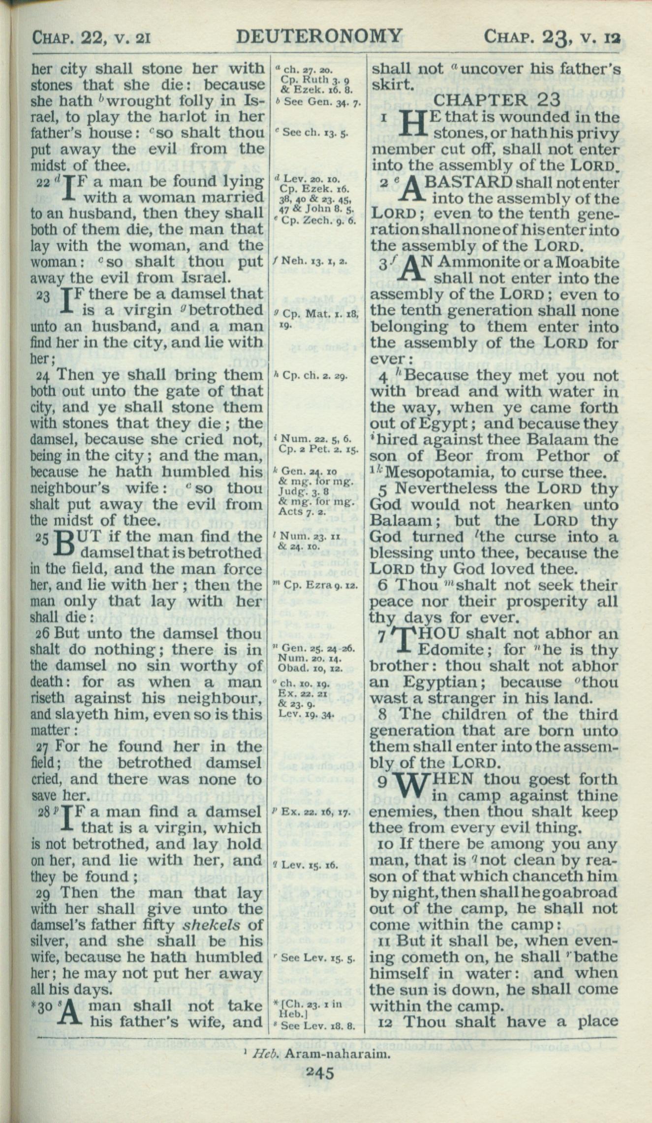 1898年Revised Version 申命記 22 章 22 節到 23 章 12 節