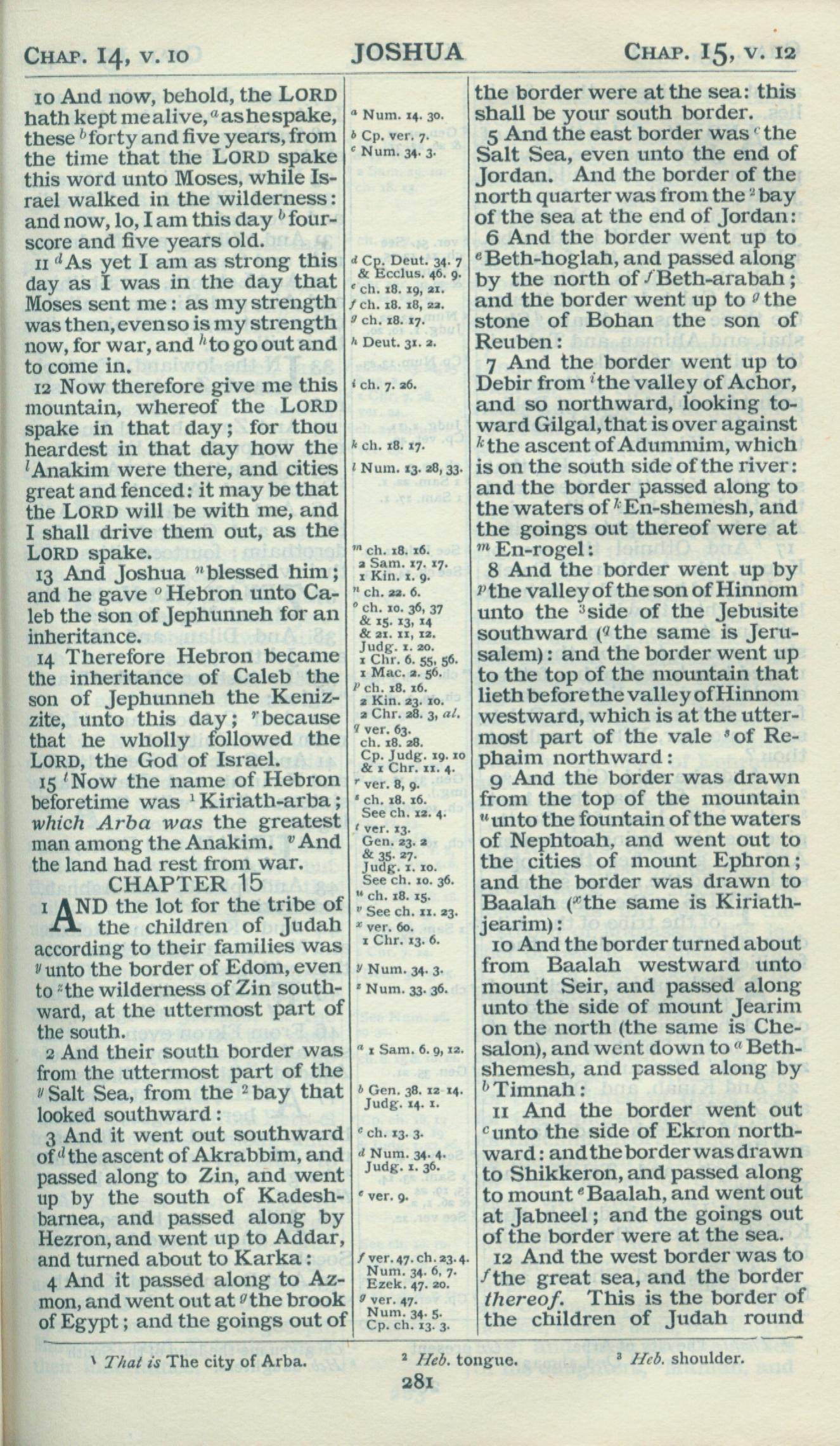 1898年Revised Version 約書亞記 14 章 10 節到 15 章 12 節