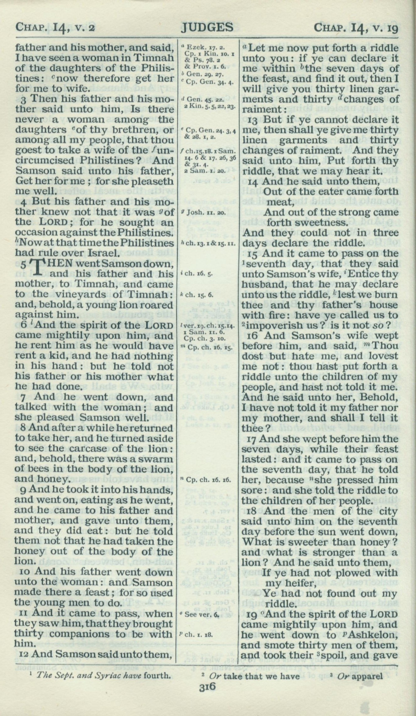 1898年Revised Version 士師記 14 章 3 節到 14 章 19 節