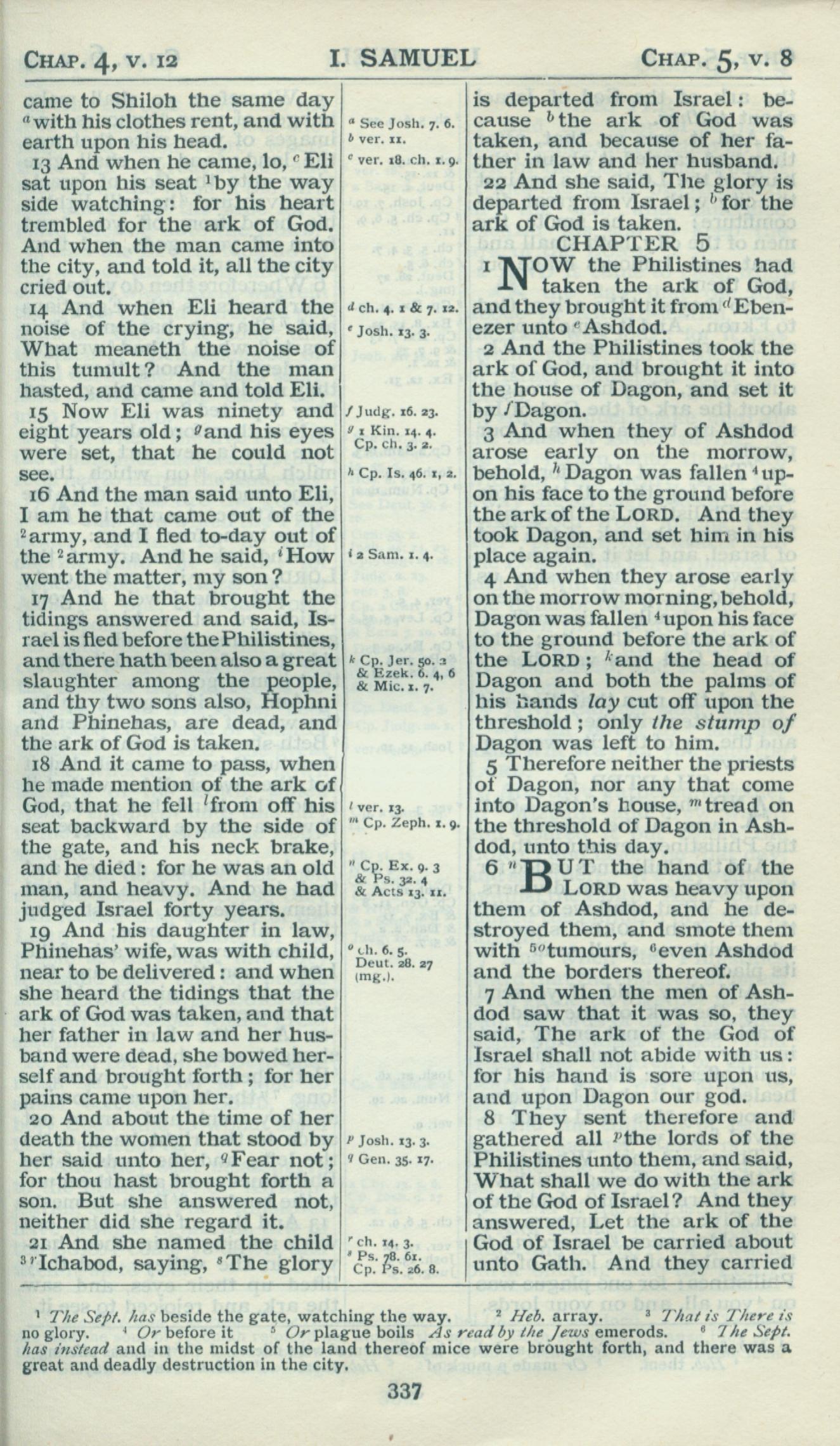 1898年Revised Version 撒母耳記上 4 章 13 節到 5 章 8 節