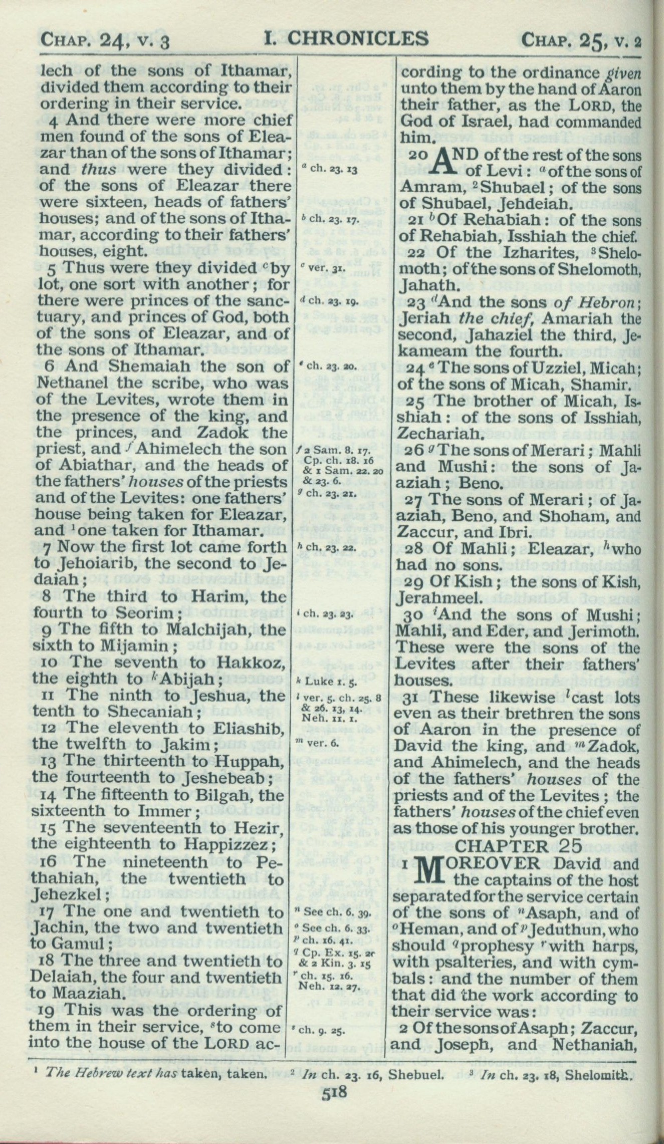 1898年Revised Version 歷代志上 24 章 4 節到 25 章 2 節