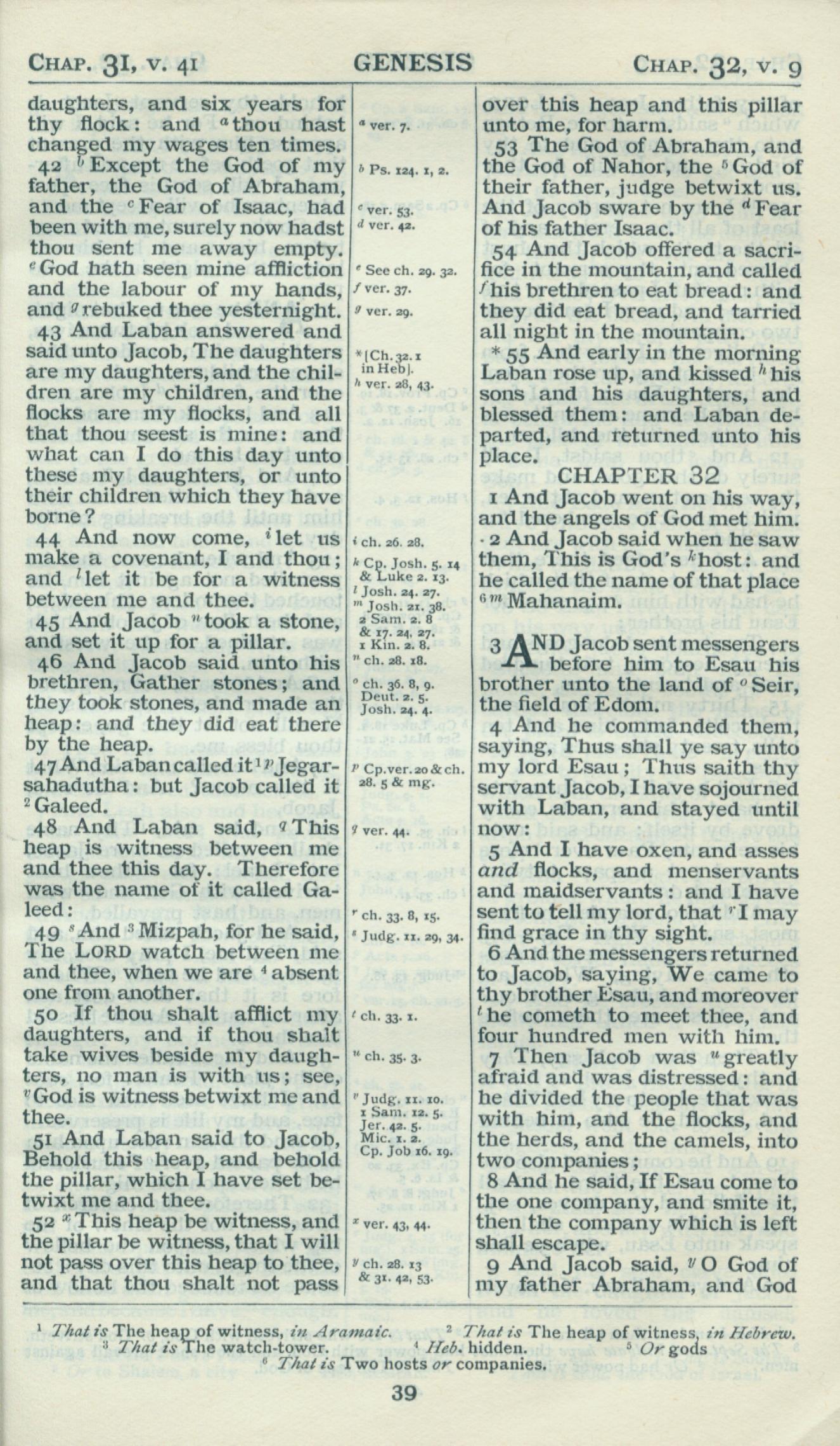 1898年Revised Version 創世記 31 章 42 節到 32 章 9 節