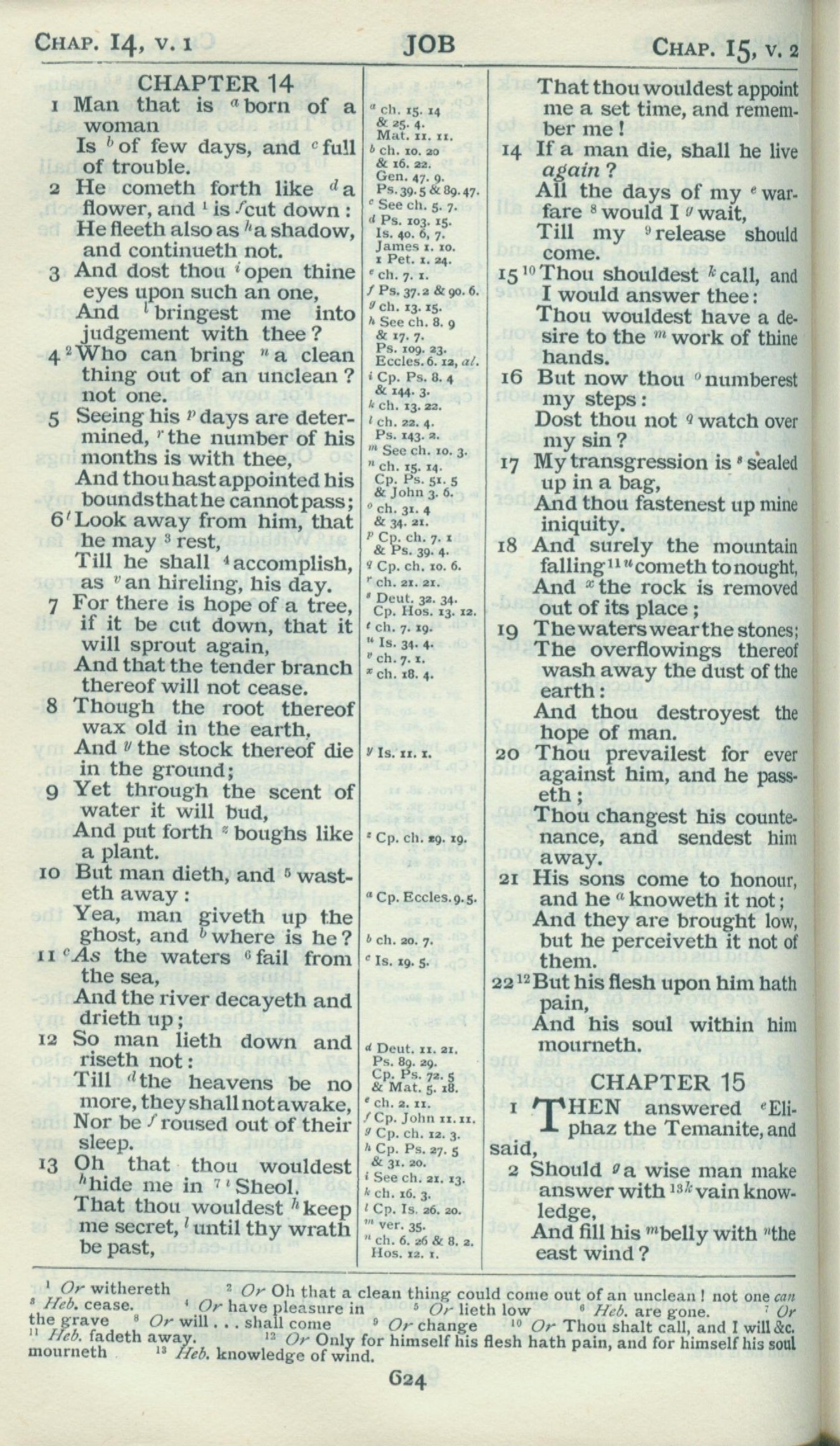 1898年Revised Version 約伯記 14 章 1 節到 15 章 2 節