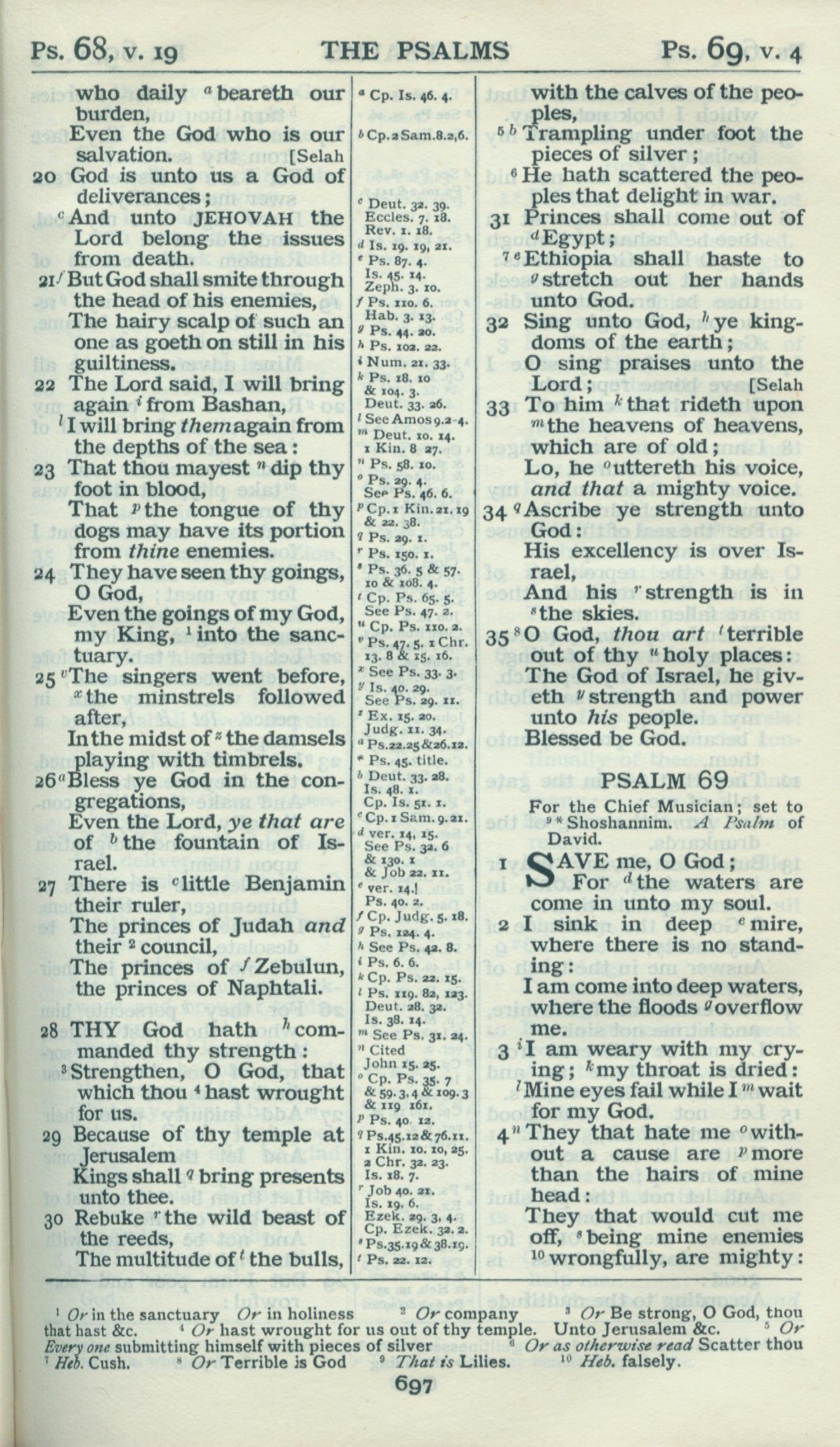 1898年Revised Version 詩篇 68 章 20 節到 69 章 4 節