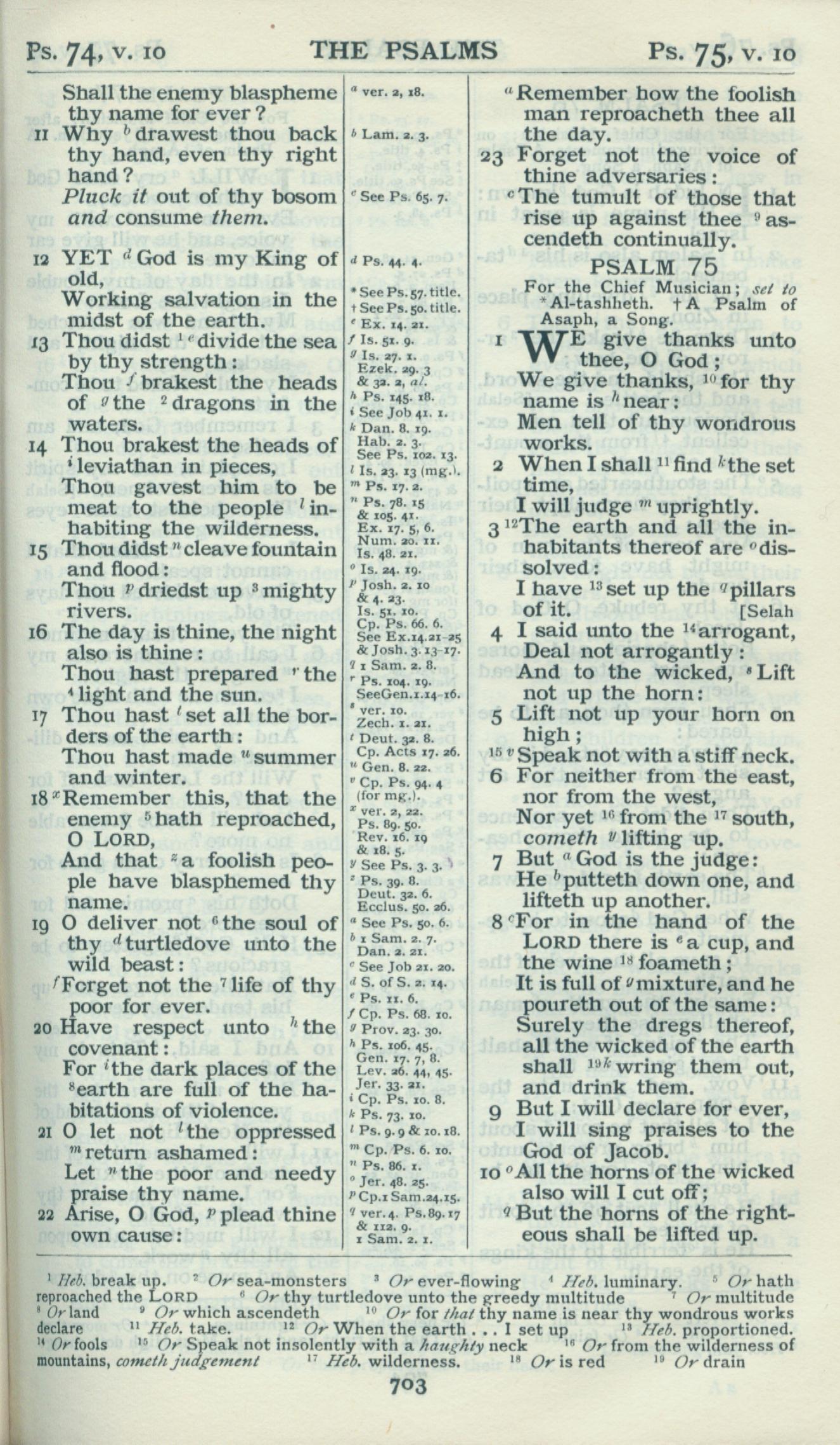 1898年Revised Version 詩篇 74 章 11 節到 75 章 10 節