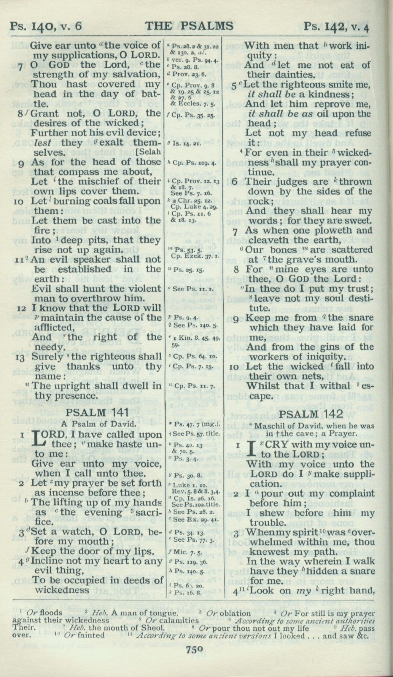 1898年Revised Version 詩篇 140 章 7 節到 142 章 4 節