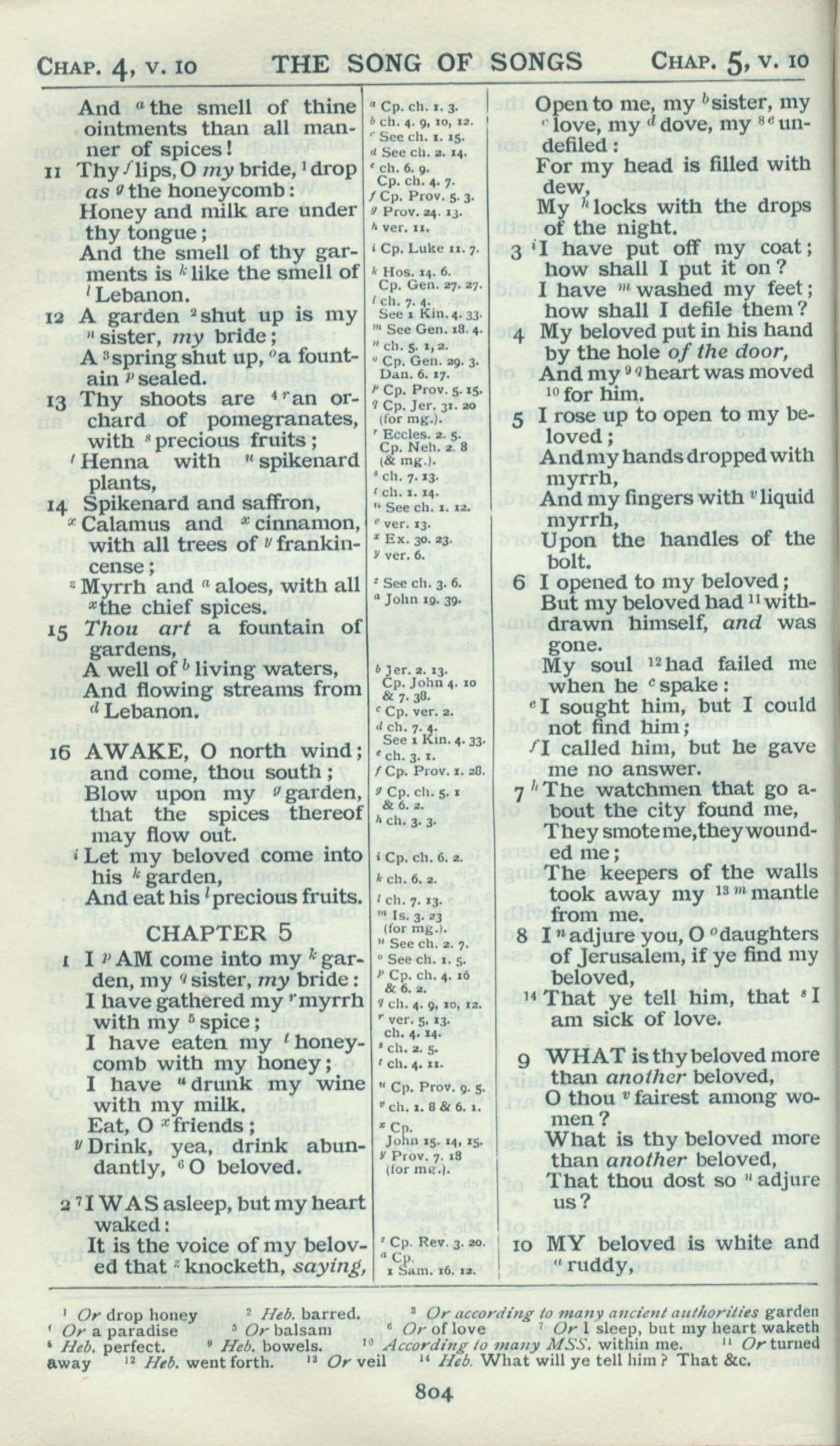 1898年Revised Version 雅歌 4 章 11 節到 5 章 10 節