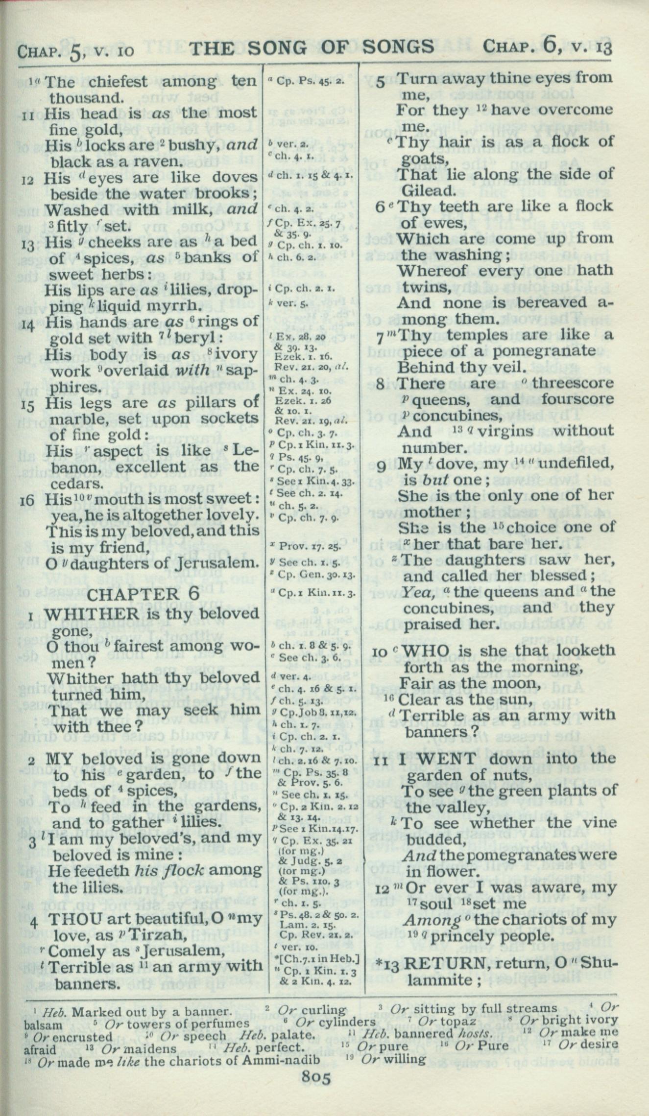 1898年Revised Version 雅歌 5 章 11 節到 6 章 13 節