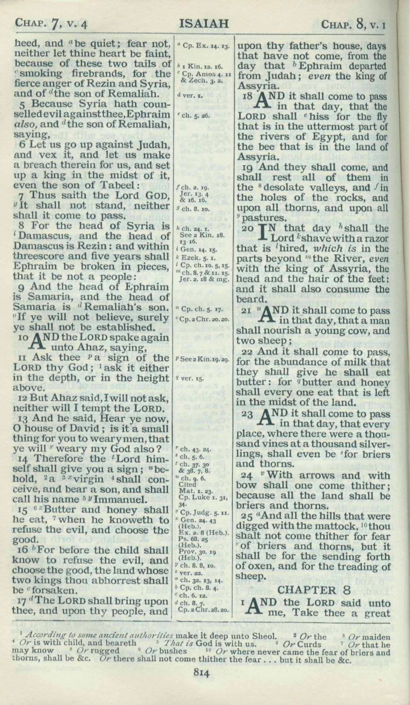 1898年Revised Version 以賽亞書 7 章 5 節到 8 章 1 節