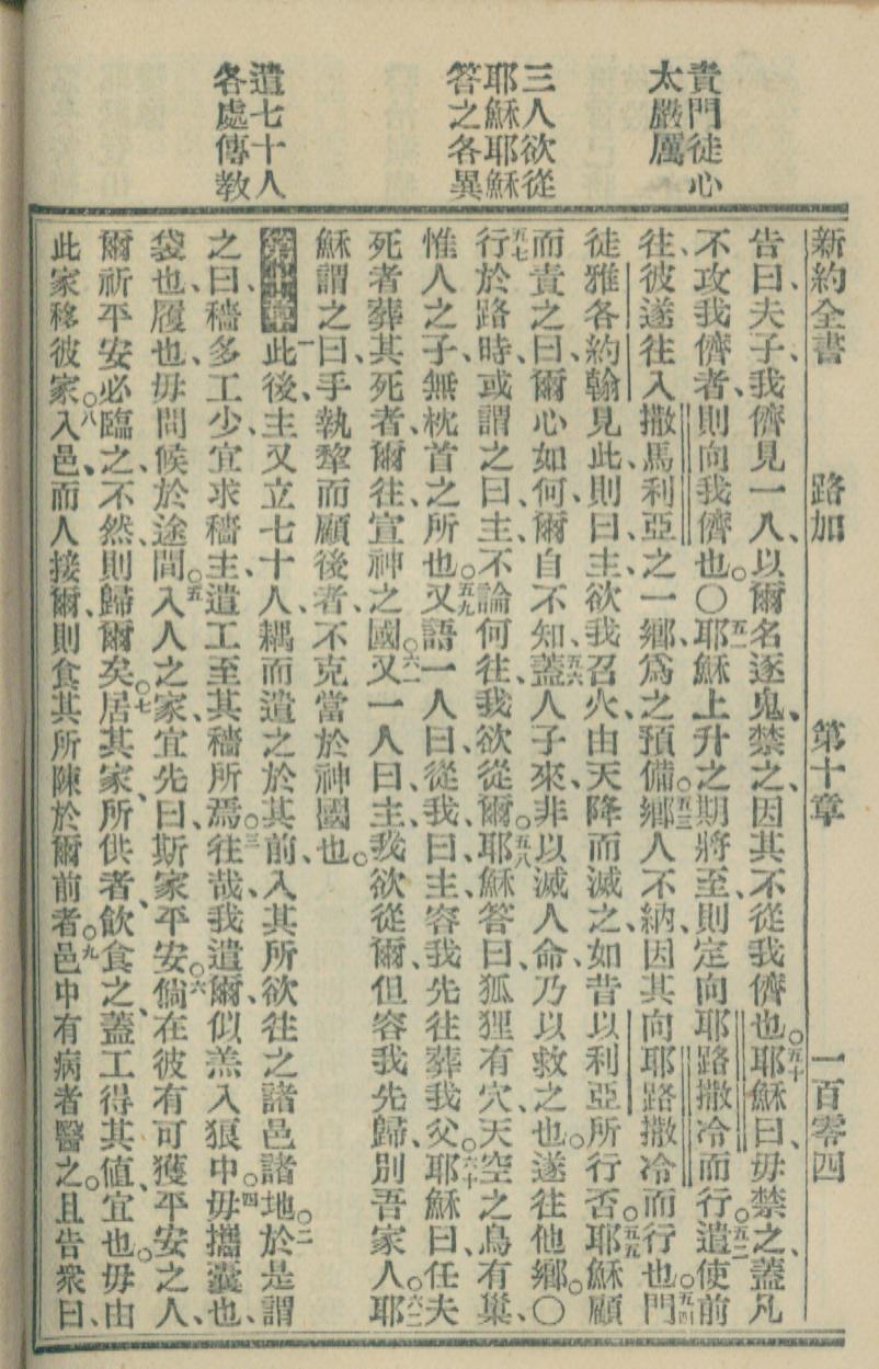 1900年新約全書 路加福音 9 章 49 節到 10 章 9 節