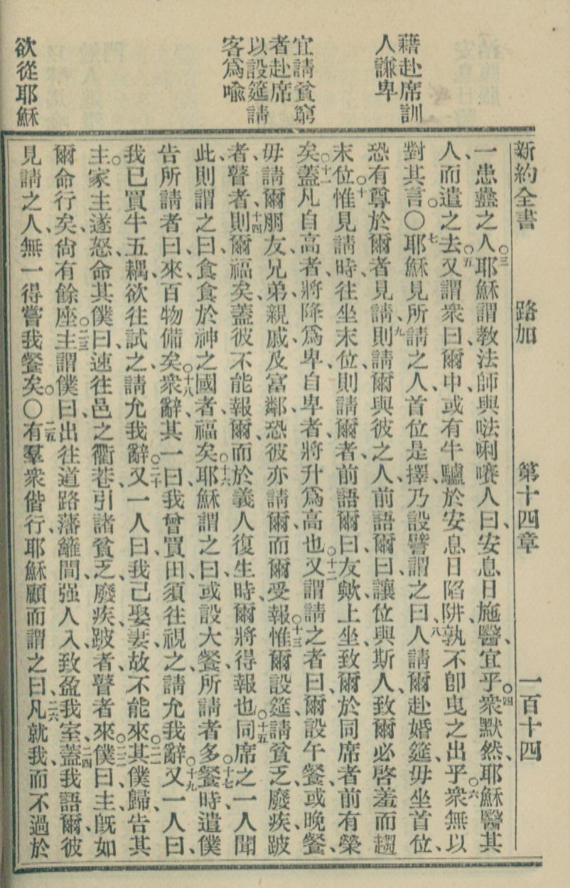1900年新約全書 路加福音 14 章 3 節到 14 章 25 節