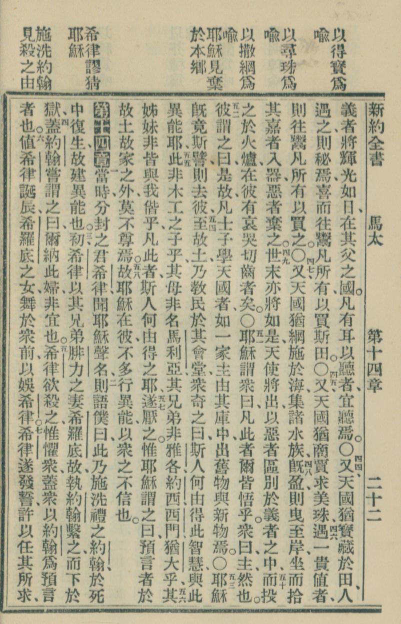 1900年新約全書 馬太福音 13 章 43 節到 14 章 7 節