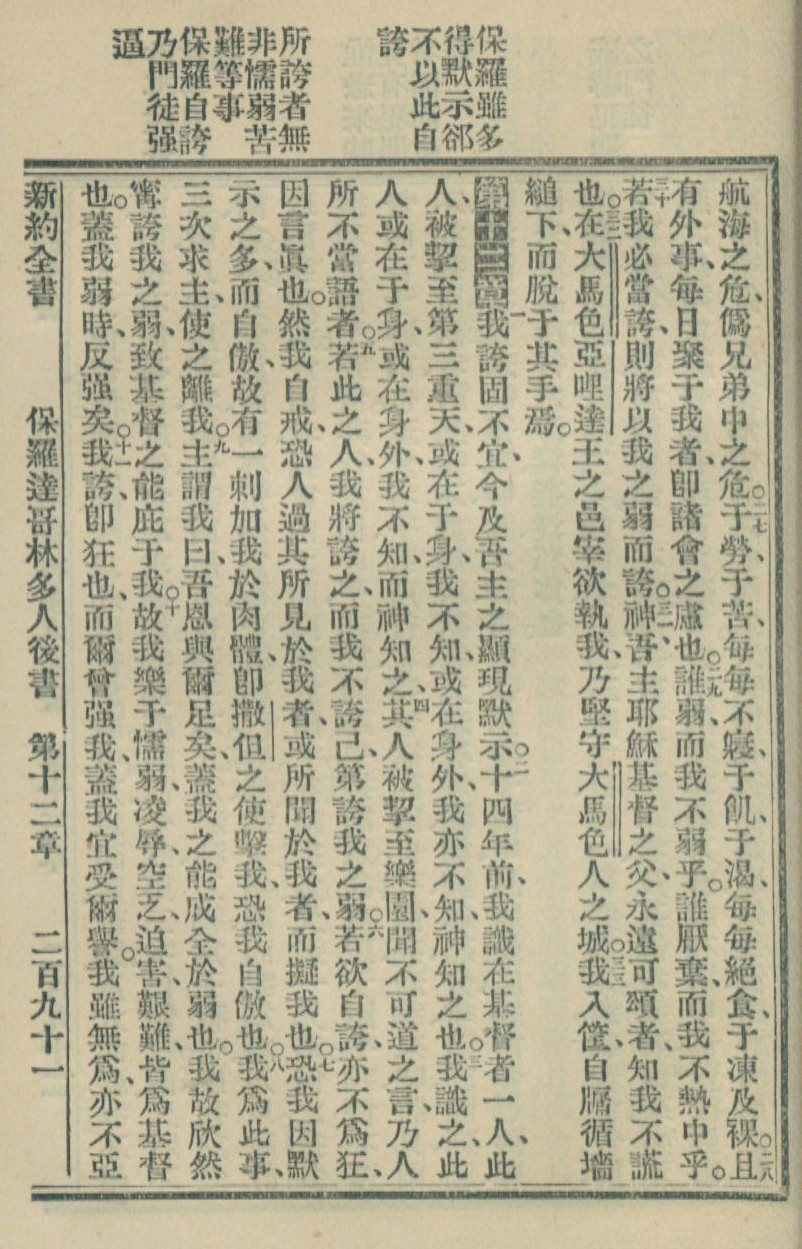 1900年新約全書 哥林多後書 11 章 27 節到 12 章 11 節