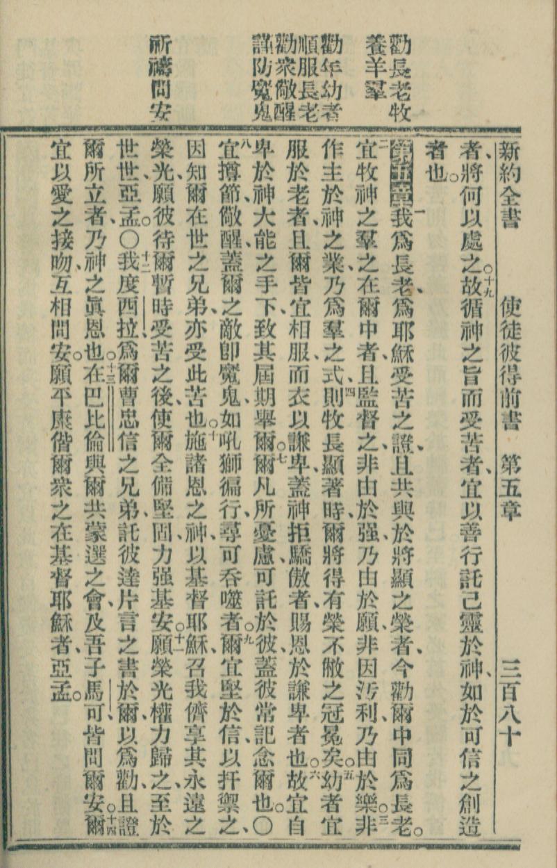 1900年新約全書 彼得前書 4 章 19 節到 5 章 14 節