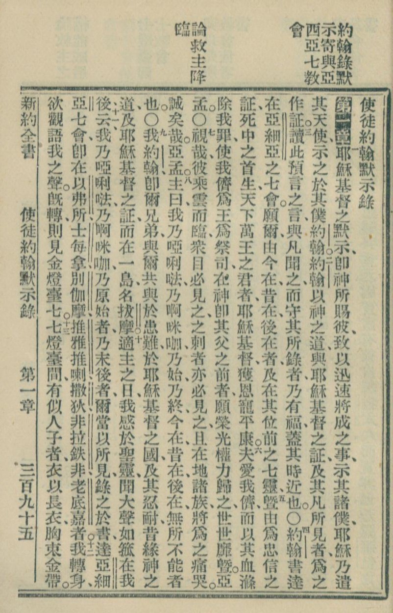 1900年新約全書 啟示錄 1 章 1 節到 1 章 13 節