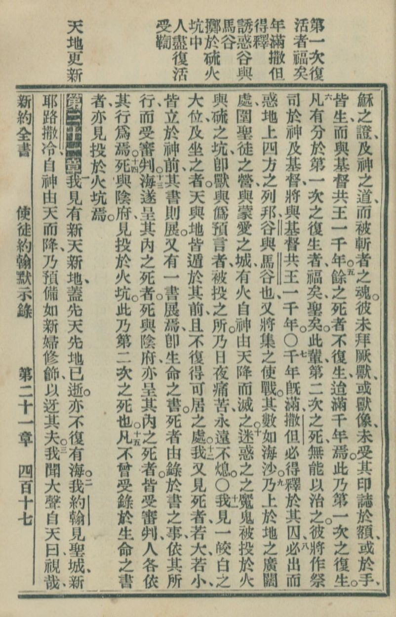 1900年新約全書 啟示錄 20 章 5 節到 21 章 2 節