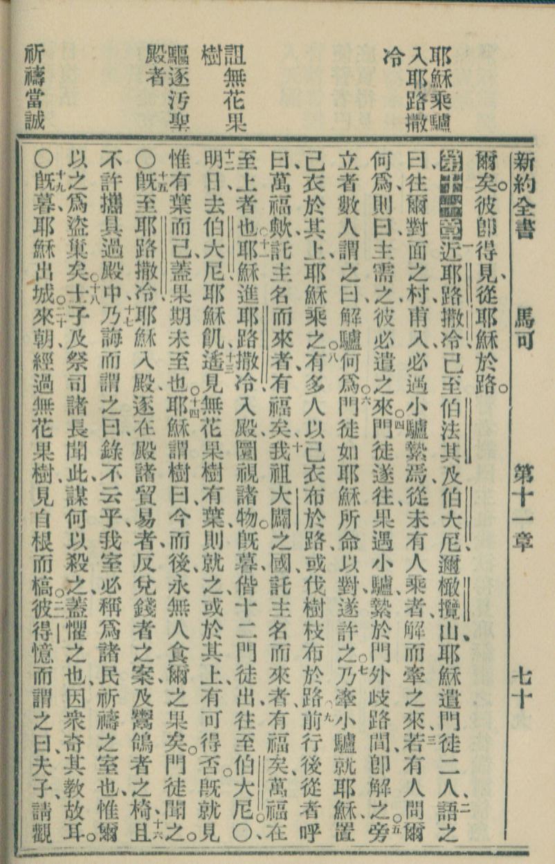 1900年新約全書 馬可福音 11 章 1 節到 11 章 21 節