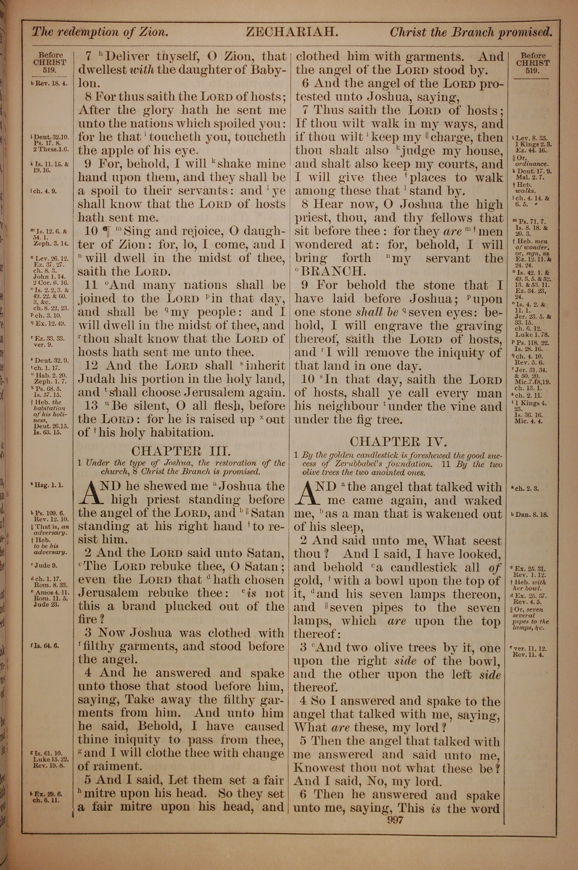 1882年Holy Bible 撒迦利亞書 2 章 7 節到 4 章 6 節