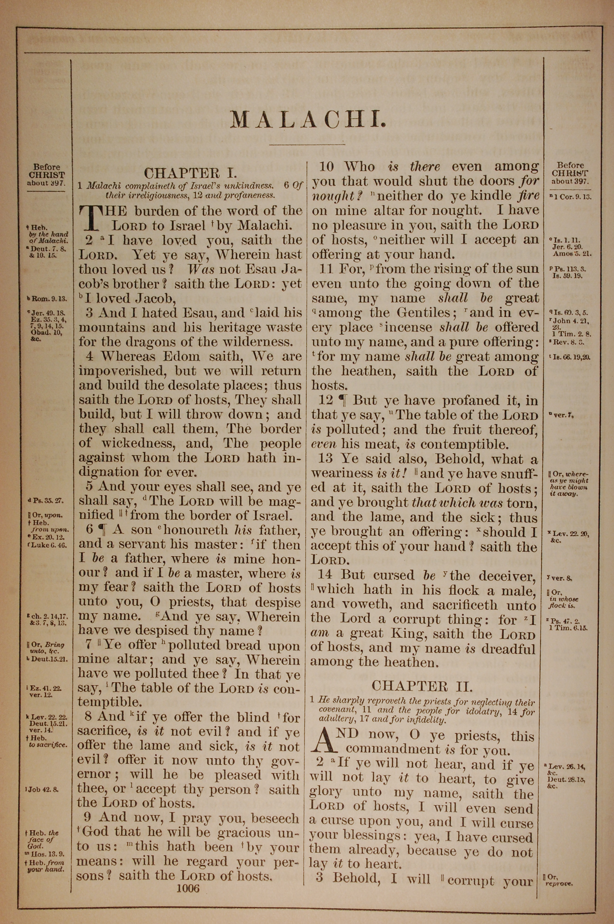 1882年Holy Bible 瑪拉基書 1 章 1 節到 2 章 3 節