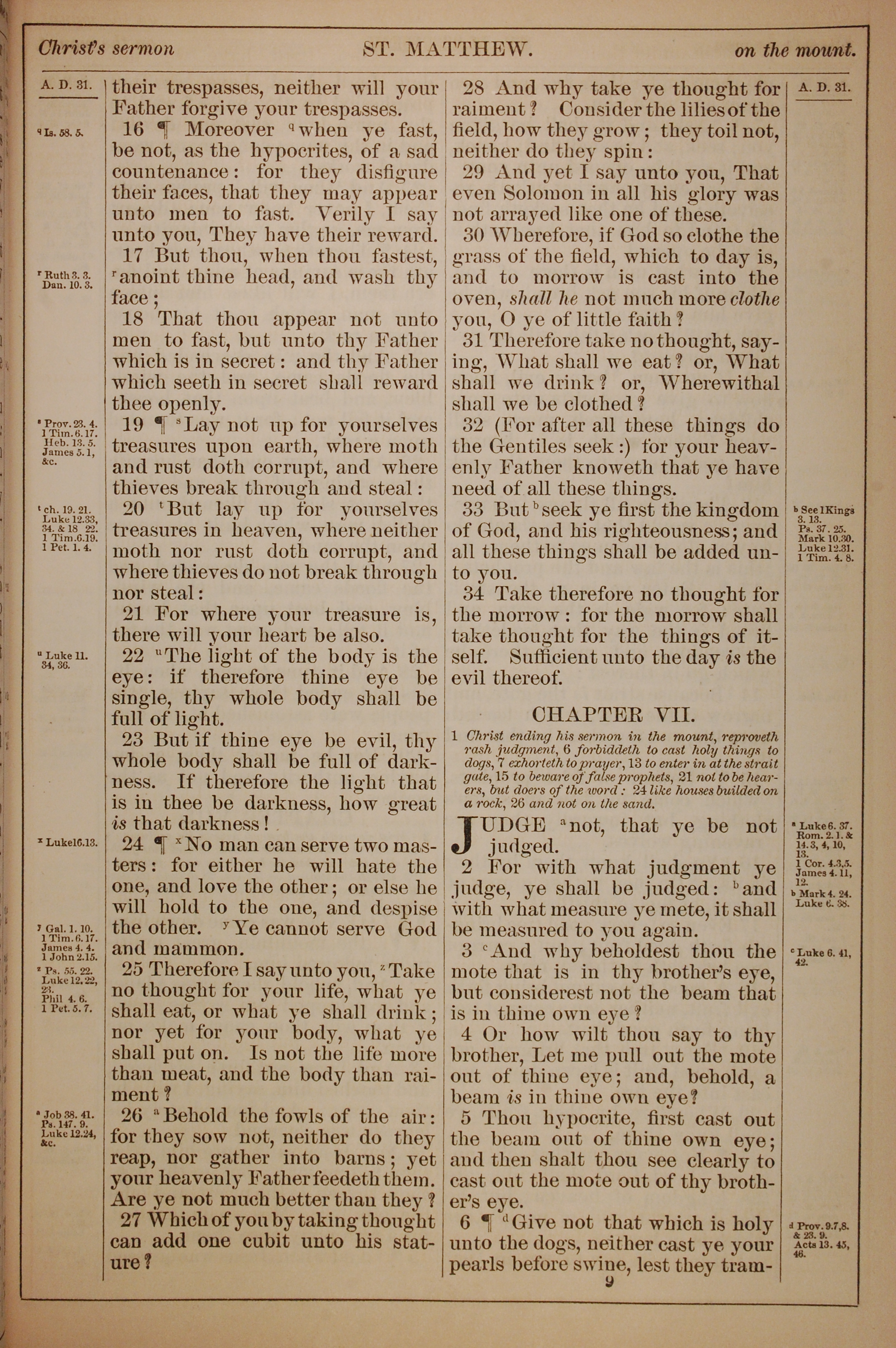 1882年Holy Bible 馬太福音 6 章 16 節到 7 章 6 節