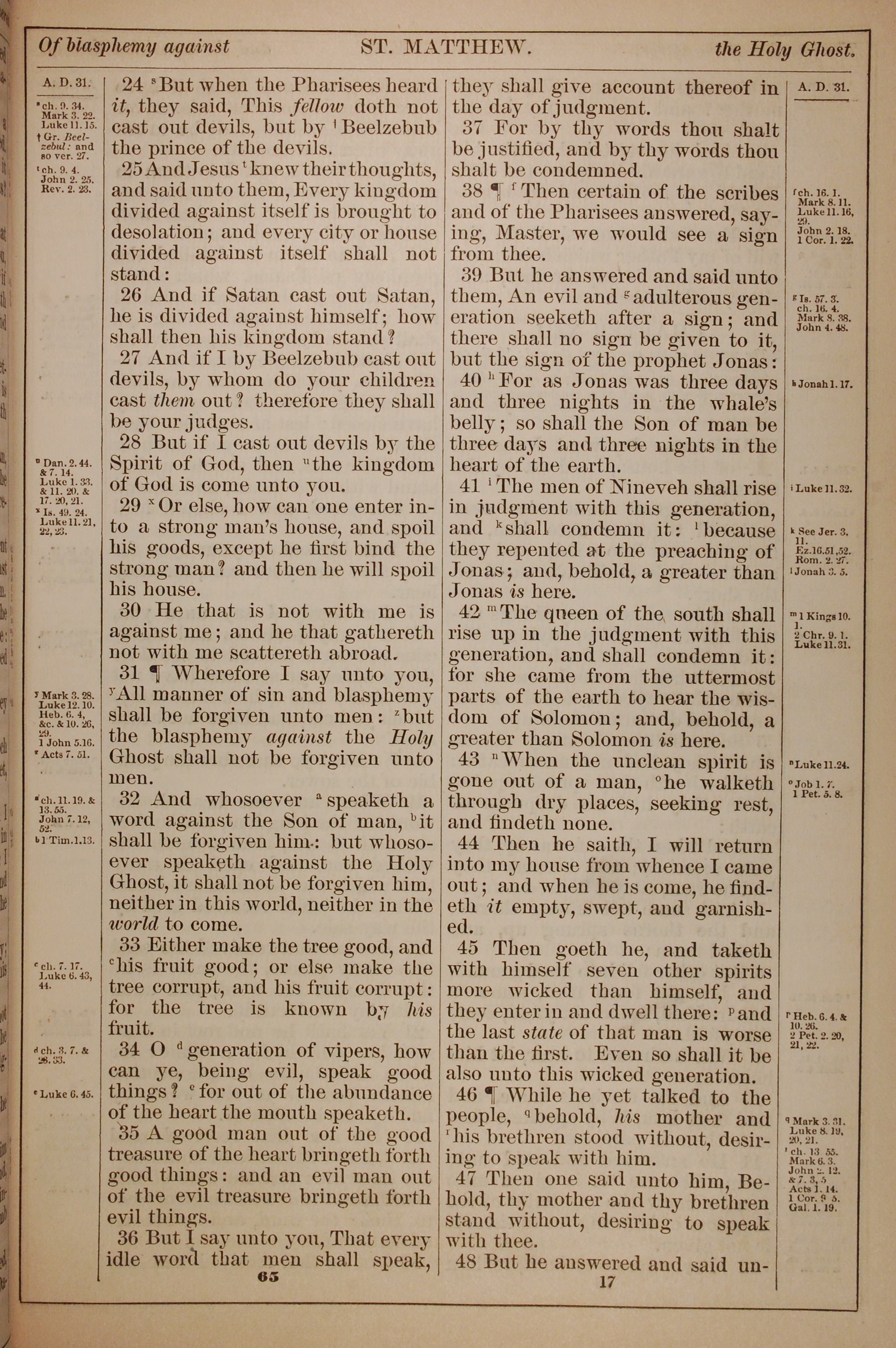 1882年Holy Bible 馬太福音 12 章 24 節到 12 章 48 節