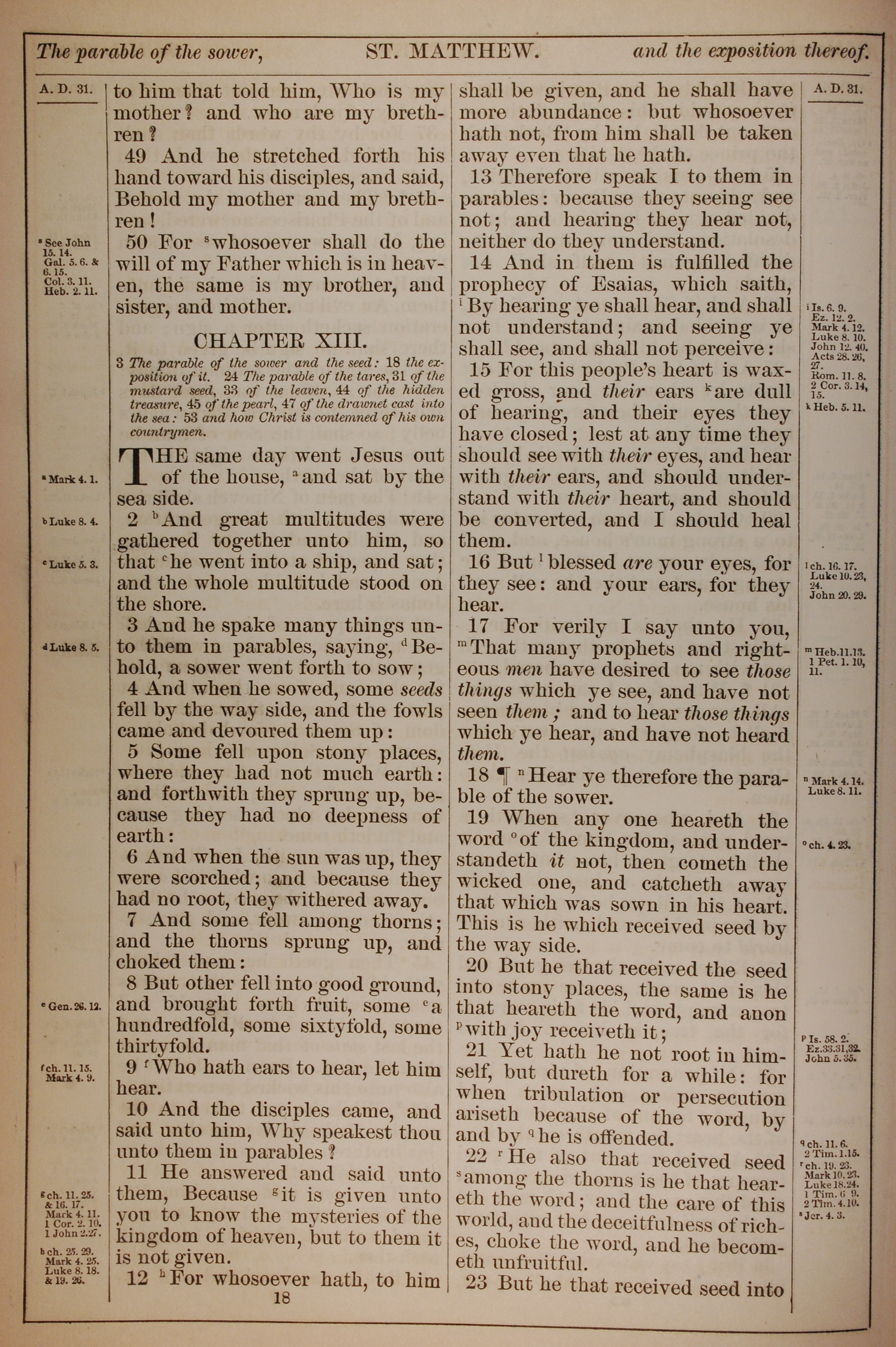 1882年Holy Bible 馬太福音 12 章 49 節到 13 章 23 節
