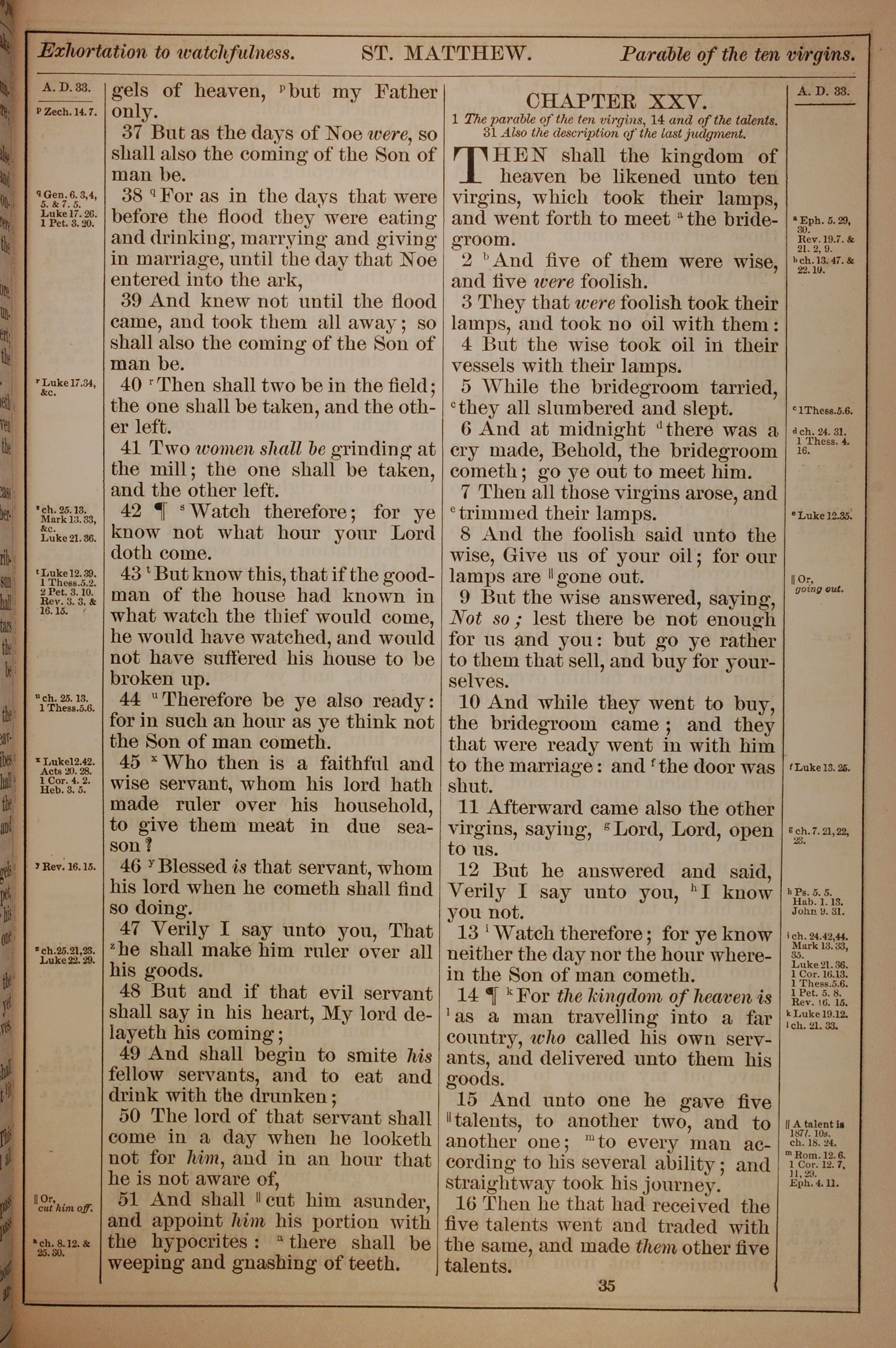 1882年Holy Bible 馬太福音 24 章 37 節到 25 章 16 節