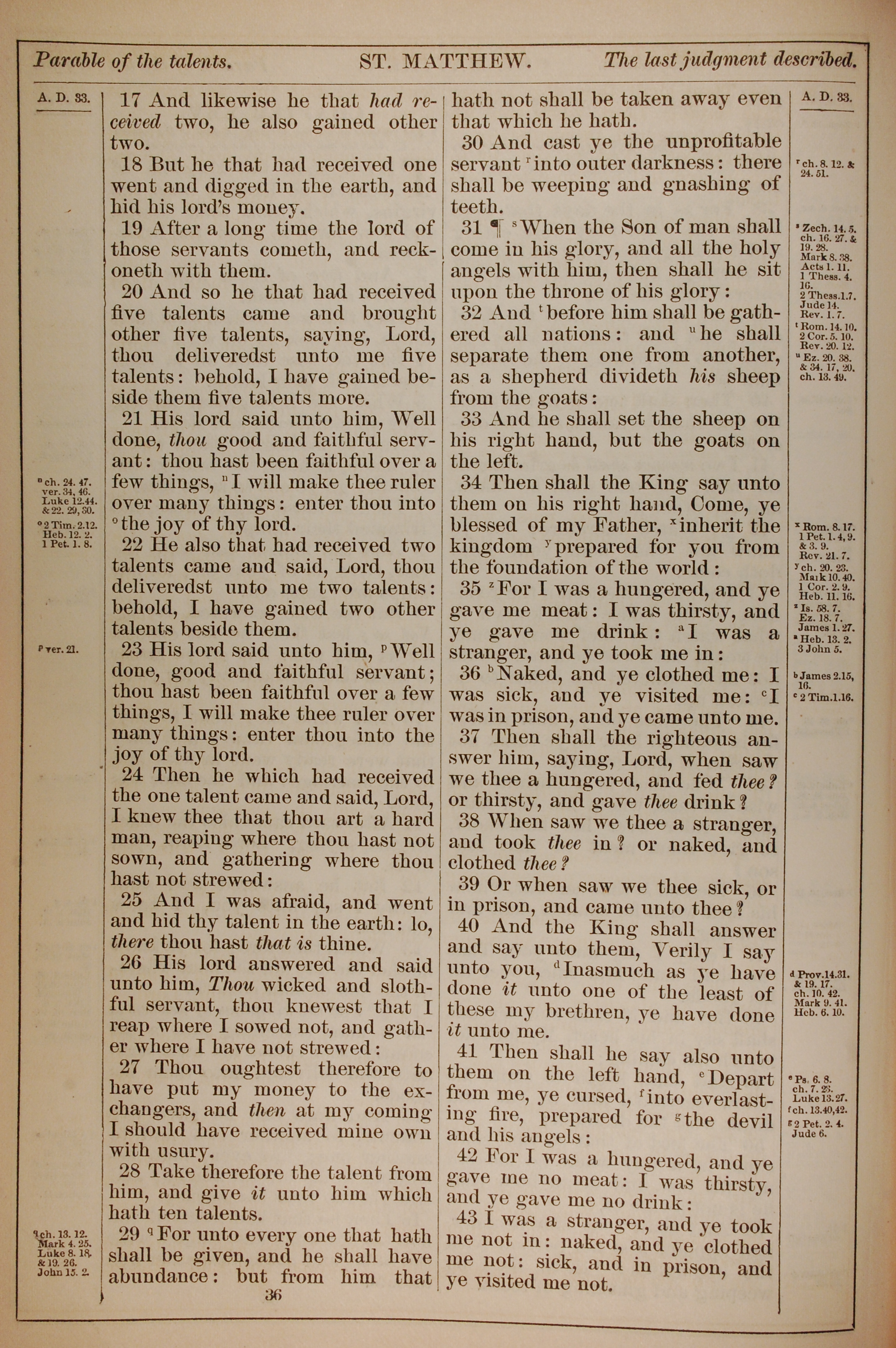 1882年Holy Bible 馬太福音 25 章 17 節到 25 章 43 節