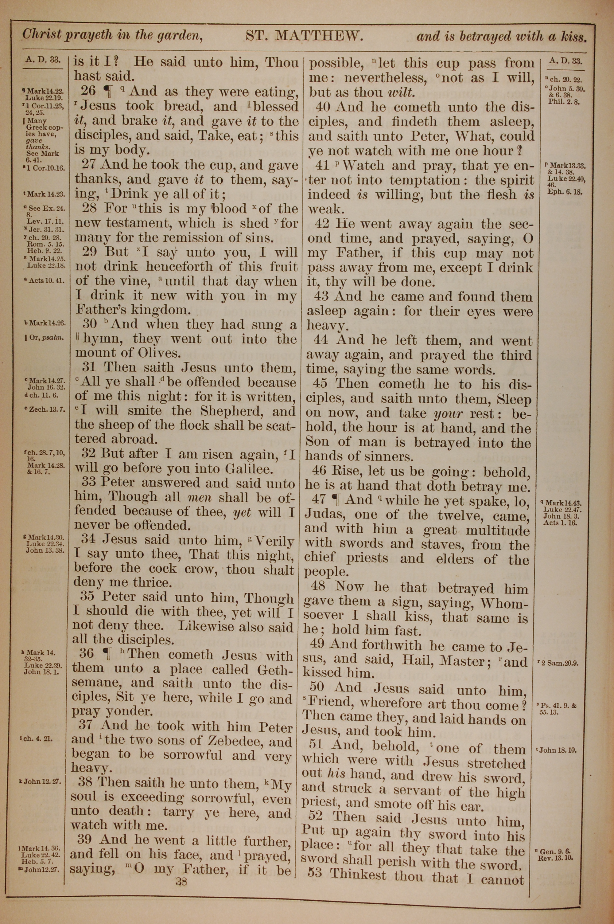 1882年Holy Bible 馬太福音 26 章 26 節到 26 章 53 節